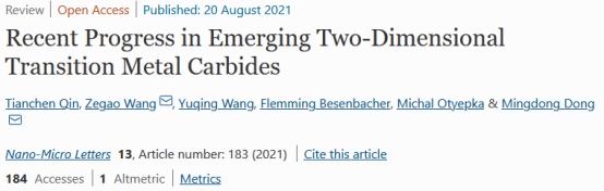 相关成果以“Recent Progress in Emerging Two-Dimensional Transition Metal Carbides” 为题发表在著名期刊《Nano-Micro Letters》上(中科院一区,川大B刊,影响因子16.419)。论文第一作者为beat365中文官方网站beat365中文官方网站2016级本科生秦天辰,我校王泽高特聘研究员、丹麦Aarhus University董明东教授为共同通讯作者。丹麦三院院士、中国科学院外籍院士、中国政府友谊奖获得者、丹麦Aarhus University的Flemming Besenbacher教授以及捷克Palacký University的Michal Otyepka教授参与了该成果。论文第一通讯单位为beat365中文官方网站beat365中文官方网站。秦天辰同学目前在中国科技大学攻读硕士学位。