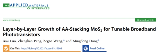 相关成果以“Layer-by-layer Growth of AA-stacking MoS2 for Tunable Broadband Phototransistors” 为题发表在著名期刊《ACS Applied Materials & Interfaces》上(中科院一区,川大B刊,影响因子9.229)。论文第一作者为beat365中文官方网站beat365中文官方网站2018级本科生罗夕艾,我校王泽高特聘研究员、丹麦Aarhus University董明东教授为共同通讯作者,beat365中文官方网站2018级本科生彭正瀚参与了该成果。论文第一通讯单位为beat365中文官方网站beat365中文官方网站。
