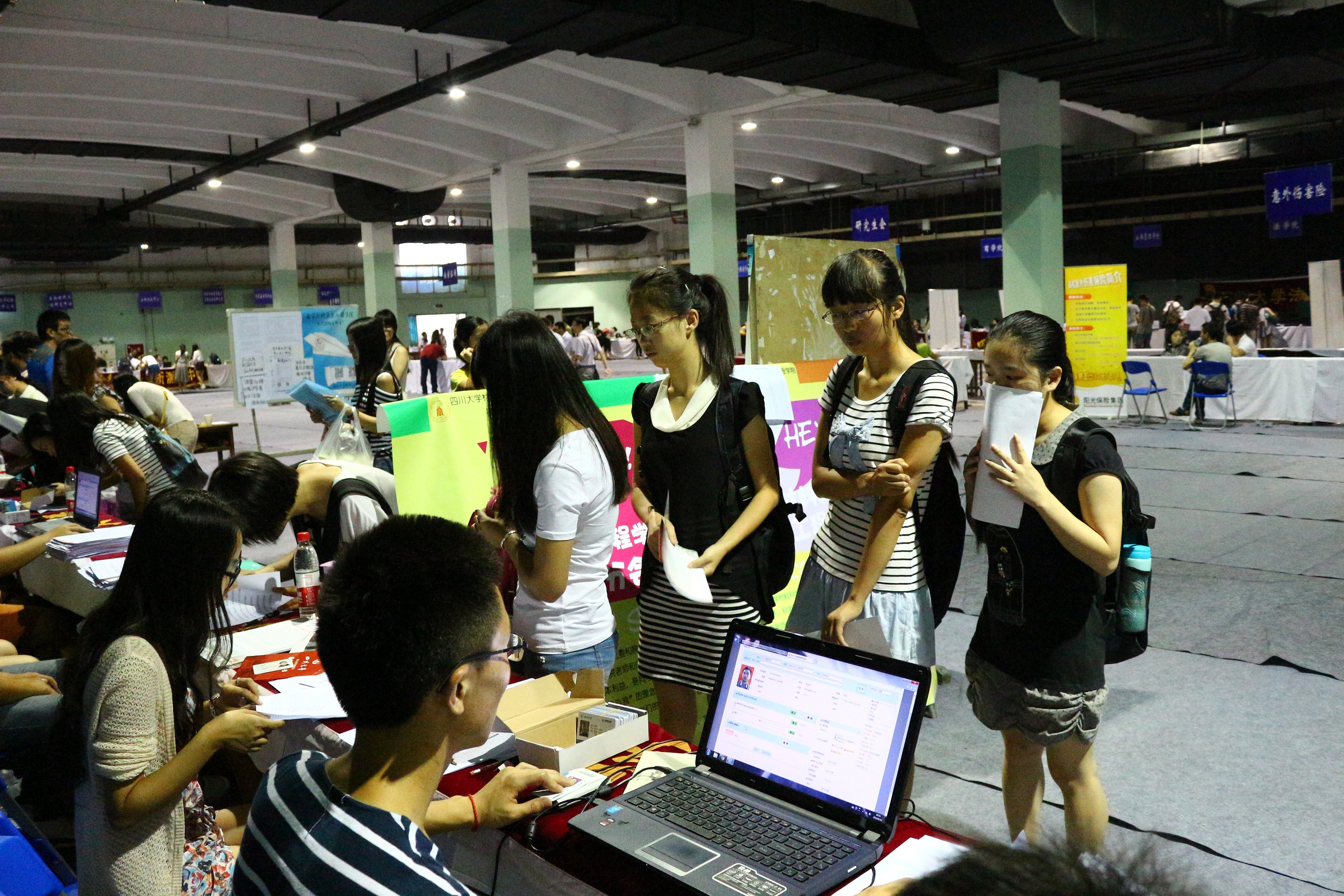 红色横幅、升空气球、巨幕电视、翠绿阳伞,体育馆的别样风景带我们走进了一年一度的迎新季。2014年9月12日,beat365中文官方网站迎来了2014级硕、博士研究生新生。为期两天的迎新工作中,老师和同学们克服天气炎热的不利条件,圆满完成了迎新工作。