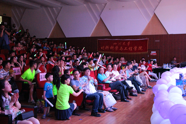 在本次晚会上一开始,由辅导员余鹏飞老师和王娇老师等人一曲欢快的小苹果舞蹈彻底点燃本场晚会。随后朱建国书记发表了讲话,在送来亲切问候和祝福的同时,朱书记也提出了对各位毕业生的几点希望:在未来的生活和工作中,我们应该在完成本职工作的基础上,积极投身各类社会活动,应努力将自己打造成为一个复合型人才,努力成为生活的强者,人生的赢家。此番讲话无疑为即将离开母校的同学们指明了人生的方向。此后,同学们精心准备的节目一一上演,将严肃的会场气氛变得轻松活泼起来。有大四毕业班的同学们带来的小品舞蹈,还有我们研究生师兄师姐带来的歌唱表演,节目形式应有尽有,而且还有精心准备的抽奖互动环节。此外,同学们为此次晚会花费了不少心血,大到场地选择、舞台布置,小到PPT制作,虽称不上尽善尽美,但可以说是颇具特色。这场晚会除了带给我们快乐,更重要的是给即将离开学校的同学们留下了一份属于川大的美好回忆。
