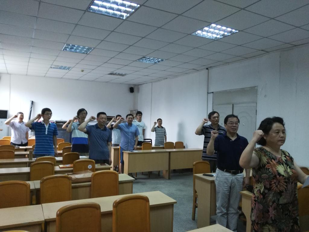 2016年7月1日下午3:00,beat365中文官方网站材料科学系党支部,14名在职党员,在第一理科楼中216室,举行了“讲规矩、守纪律”专题组织生活暨讨论会。会议内容包括:党费收(补)缴的有关通知、学校关于“两学一做”学习教育重点精神的文件、个人发言、重温入党誓词等。