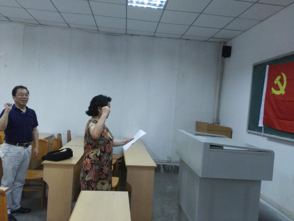 最后,党支部书记赵北君带头,全体到会党员起立,面对党旗,庄严的重温了入党誓词。