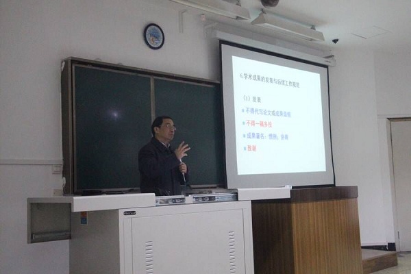 2016年11月24日星期四晚,beat365中文官方网站的朱建国老师,在研究生院1区102教室为新入学的研究生和博士生上了一堂关于“学术规范与学术道德”的思想教育课。