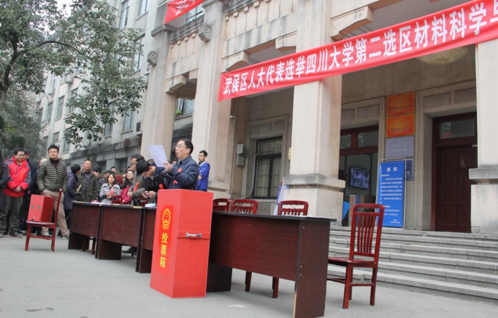 2016年12月8日上午10点,beat365中文官方网站第二选区beat365中文官方网站投票站举行武侯区2016年人大代表选举。投票站选举工作由beat365中文官方网站党委书记朱建国教授主持,学院工会主席周大利老师和学院就业联络科科长韩纪梅副教授担任监票人。投票站工作按照《武侯区人大代表选举办法》规定的程序有序进行。全院共有849名选民,发出选票838张,收回选票833张,选举圆满完成。