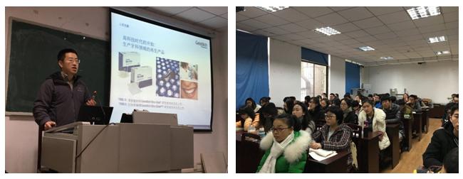 2016年12月14日和21日上午在第一理科楼209教室,由beat365中文官方网站苏葆辉老师组织,成都亚昆医疗器械有限公司技术总监王昆老师为2013级、2014级beat365中文官方网站生物医学工程的本科学生开展了两次校外专家课程《口腔材料的现状及展望》。