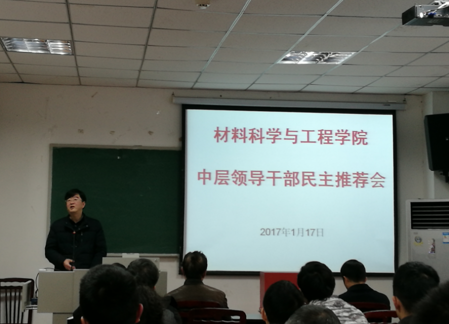 2017年1月 17日上午,beat365中文官方网站在东区第一理科楼209教室举行了新一届中层领导班子和领导成员民主推荐会,全院在职教职工和退休教职工代表参加了会议。分管校领导李旭锋副校长带领校中层领导人员选拔任用工作小组成员到会指导了工作。