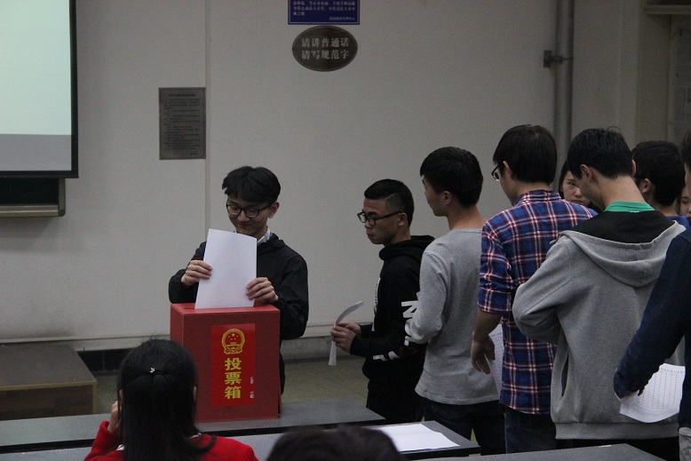 晚上八点二十,大会正式开始,全体起立,奏唱国歌。随后院党委副书记唐世红老师致辞,唐书记对beat365官网学生代表表达了殷切的希望,希望大家认真学习,追求创新。然后由主持人宣布此次大会的主题:选举beat365中文官方网站第三十次学生代表大会beat365中文官方网站学生代表。主持人依次介绍15位学生代表候选人情况并同步放映PPT,全体学生代表酝酿之后进行投票选举。