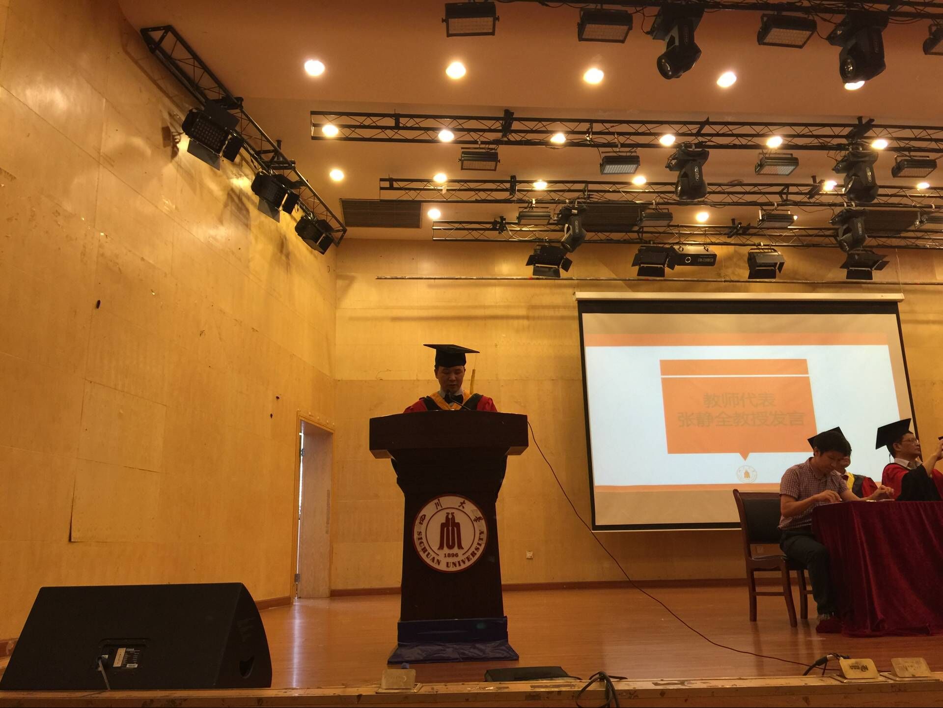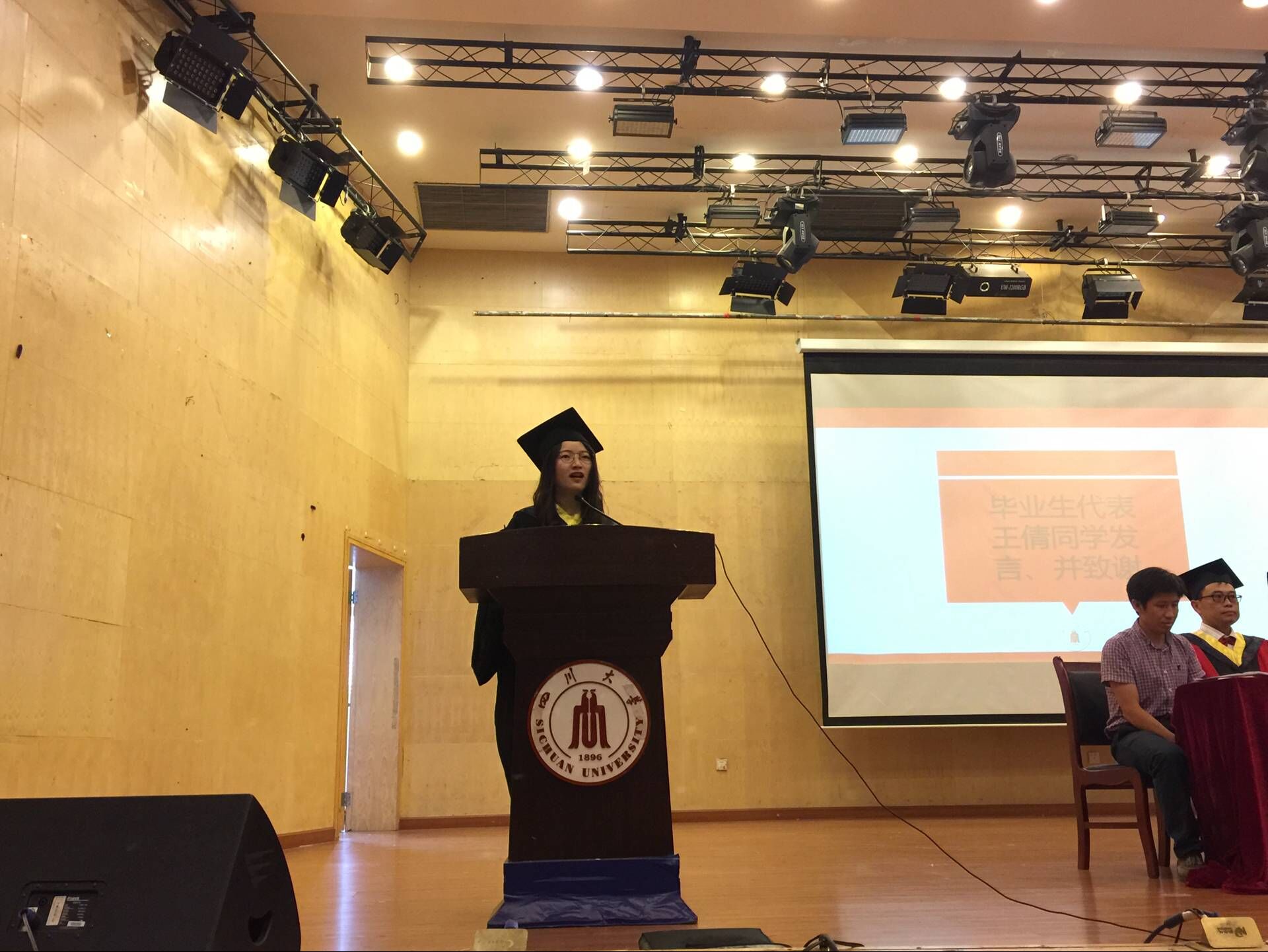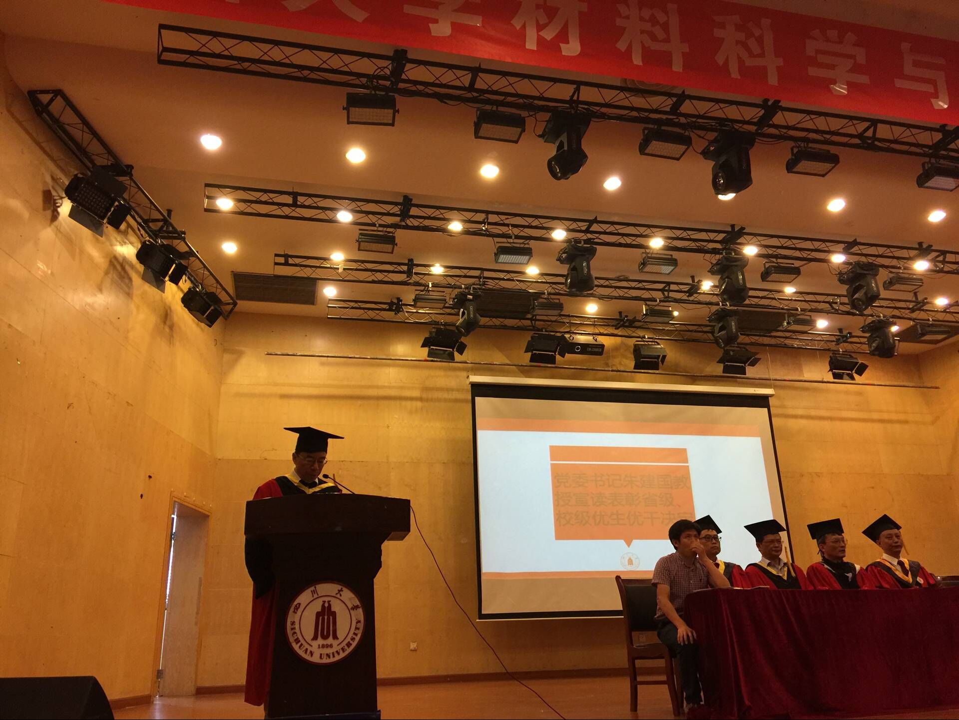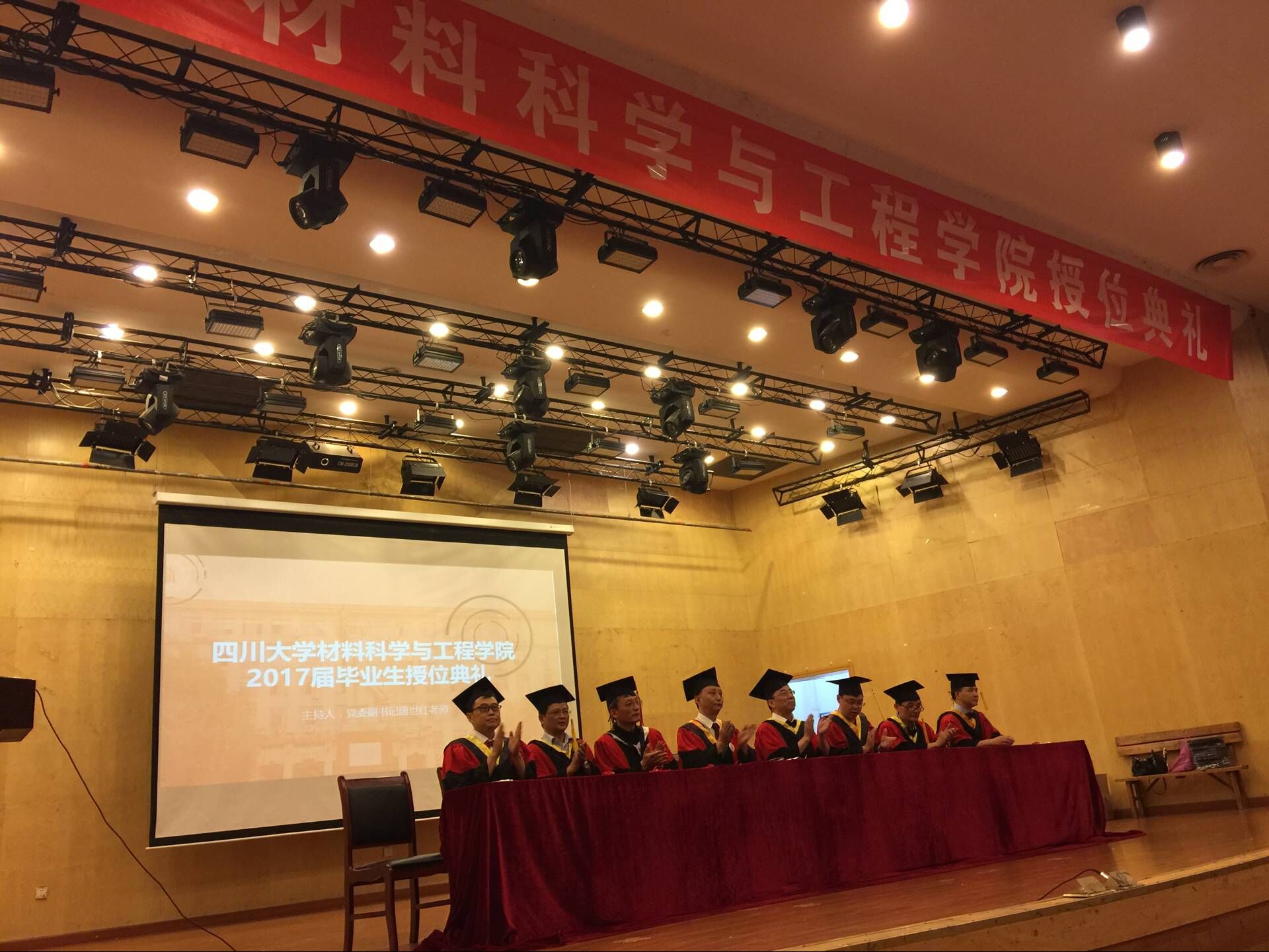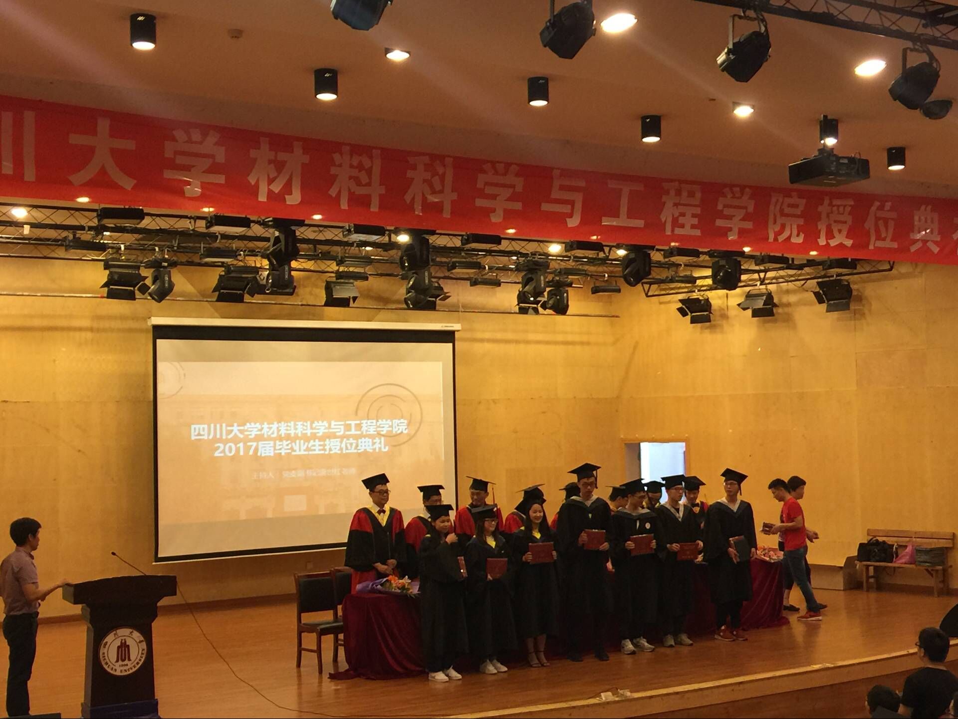 2017年6月12日上午8:20,在文华活动中心二楼音乐演播厅举行了2017届beat365中文官方网站毕业典礼。beat365中文官方网站院长尹光福教授、党委书记朱建国教授、副院长刘颖教授、工会主席周大利教授、副院长孙小松教授、党委副书记唐世红老师、新能源系主任陈云贵教授、材料科学系主任张静全教授、无机生医系党支部书记黄忠兵教授等诸位领导、老师,2017届博士、硕士以及学士共356名毕业生齐聚一堂。典礼由beat365中文官方网站党委副书记唐世红老师主持。院长尹光福教授发表了满怀深意的讲话,向所有毕业生表达了殷切的期望和浓浓的祝福。党委书记朱建国教授宣读了2017届省级校级优秀毕业生优秀学生干部的表彰决定,向2017届的优秀毕业生们表示了真挚的祝贺。教师代表张静全教授代表全体教职工向beat365中文官方网站全体毕业生表达了深切的祝愿。随后2013级本科毕业生王倩同学代表全体毕业生发表了主旨为“知识与担当”的演讲。最后是毕业典礼授位仪式,老师们将毕业证书和学位证书一一交到同学们手中,并对同学们表示祝贺。2017届毕业典礼在同学们的高兴与不舍中落下了帷幕。