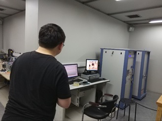 电磁兼容实验室的同学参与进行发射实验的背影