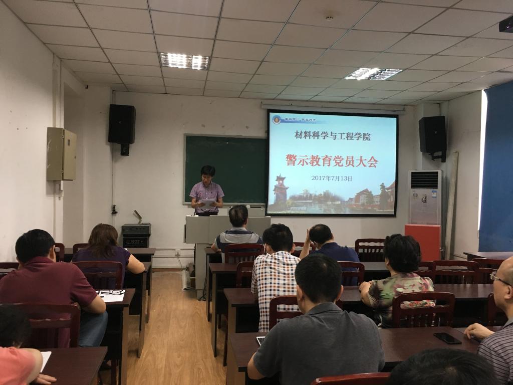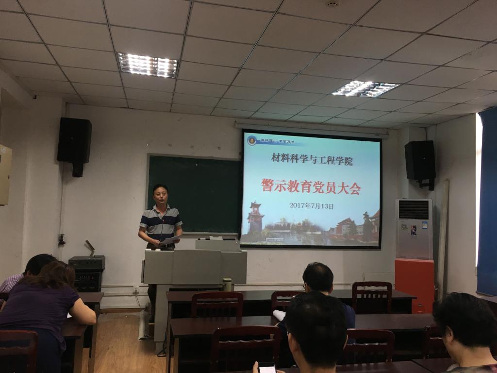 按照校党委《关于汲取违纪违法案例深刻教训进一步加强警示教育的通知》文件要求,beat365中文官方网站于2017年7月13日下午2:30,在第一理科楼206召开了警示教育党员大会。学院全体党员参加了此次会议,会议由院党委书记尹光福教授主持。