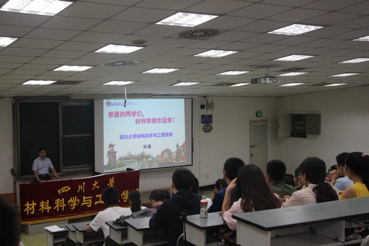 朗朗金秋,丹桂飘香,9月15日下午2点,beat365中文官方网站2017级硕博新生开学典礼在基础教学楼C104隆重举行。出席开学典礼的有beat365中文官方网站党委书记尹光福老师,beat365中文官方网站院长刘颖老师、党委副书记唐世红老师、材料科学系主任张静全老师、金材系主任黄维刚老师、新能源系主任陈云贵老师,无机与生医系副主任邹远文老师、学生科长兼团委书记硕士辅导员王娇老师、学籍管理老师胡英、曾栌贤、教师代表吴家刚老师以及17级全体研究生。