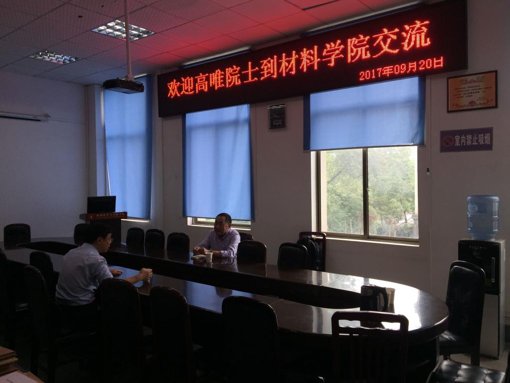 9月20日上午10时,国际著名材料领域专家、新西兰皇家科学院与工程院院士高唯教授应邀来访beat365中文官方网站,学院院长刘颖教授、副院长吴家刚教授参与学术交流。首先,刘颖院长围绕学科优势、人才培养等方面向高唯院士简要介绍了学院的总体情况;而后,高唯院士就材料领域前沿科技、国际合作、联合培养等重点问题同刘颖院长、吴家刚副院长进行深入探讨。此次短暂学术交流在轻松的氛围中结束,也为双方以后长期的合作指明了方向。