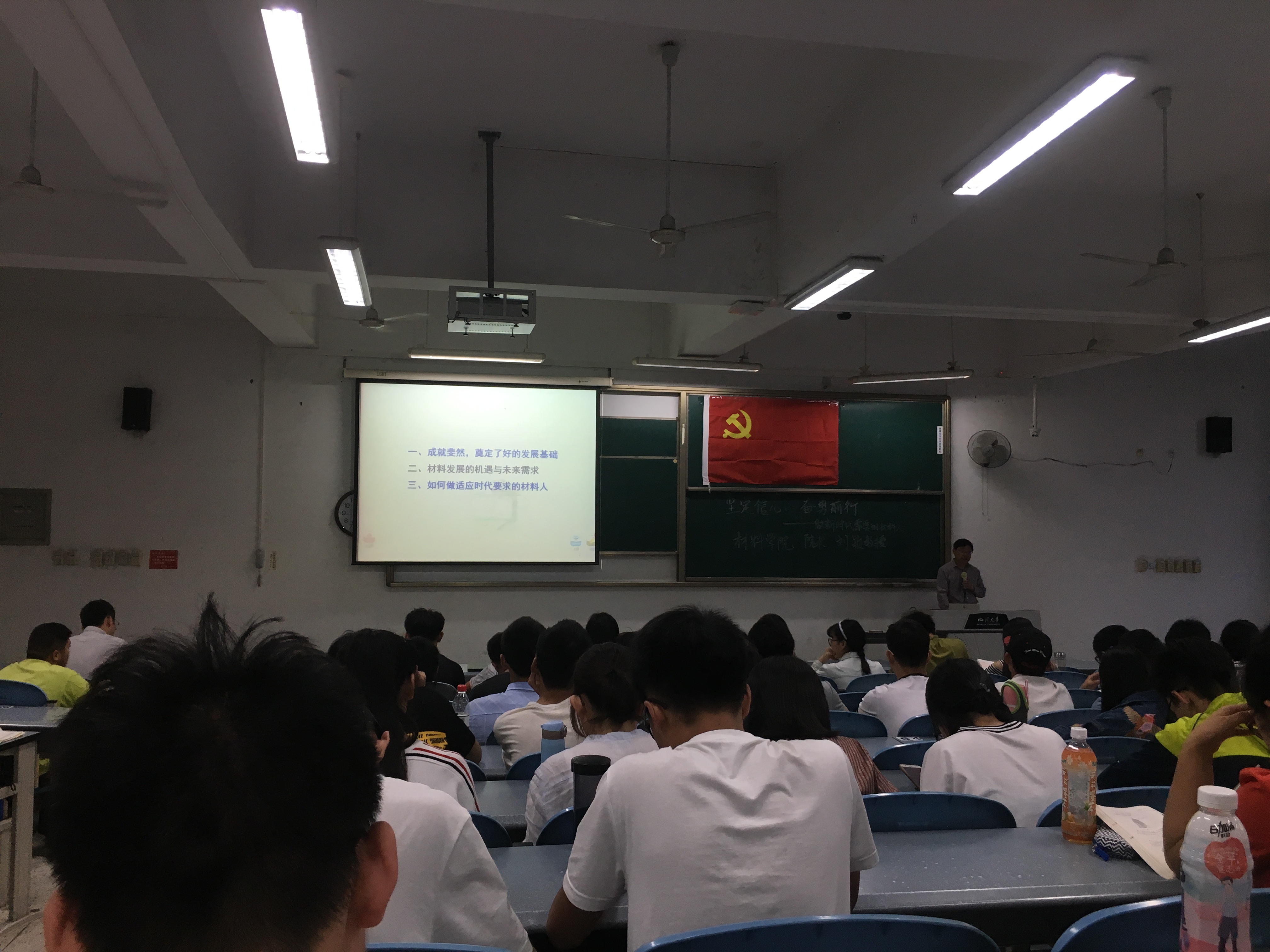 晚上19:00,在2017级辅导员王志超老师的主持下,刘颖教授的报告正式开始。刘颖院长围绕如何在党的十九大精神下做好自己的本职工作的主题从三方面展开。第一,国家成就斐然,为我们奠定了良好的发展基础。刘颖院长全面地介绍了我国十八大以来取得的辉煌成就,就经济增长,科技进步,创新成果丰硕,人民生活持续改善,生态环境状况变好等进行了详细地阐述,这些看的见的看不见的变化,都说明我国已经踏入了全新的时代。在此前提下,刘颖院长指出我国取得的这些成就都为我们当好材料人奠定了良好的基础。为此,我们要为其他事业的发展提供材料技术的支撑。第二,材料发展的机遇与未来需求。对此,刘颖院长说明,随着科技创新的不断发展完善,新材料也日益成为我国的战略性新兴产业,这是我们材料学科发展自我、实现制造强国的良好机遇。除此之外,我国重大工程以及未来产业的发展都离不开新材料技术的支持,这也说明未来对新材料的需求是会只增不减的。同时,刘颖院长介绍了国内外新材料的发展态势,就我国材料技术的现状、发展方向、前景展望以及存在的问题着重进行了讲解。第三,如何做适应时代要求的材料人。作为一名川大学生,作为一名双一流重点建设学科的学子,学校与学院为我们营造了良好的学习氛围,同学们肩上有着利用新材料新技术推动国家进步和建设制造强国的伟大使命。因此,同学们应该认真学习,不辱使命,做一名适应时代要求的材料人,这也是刘颖院长对全体同学的殷切希望。