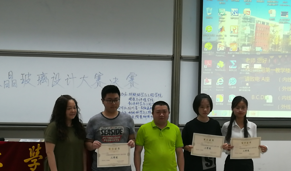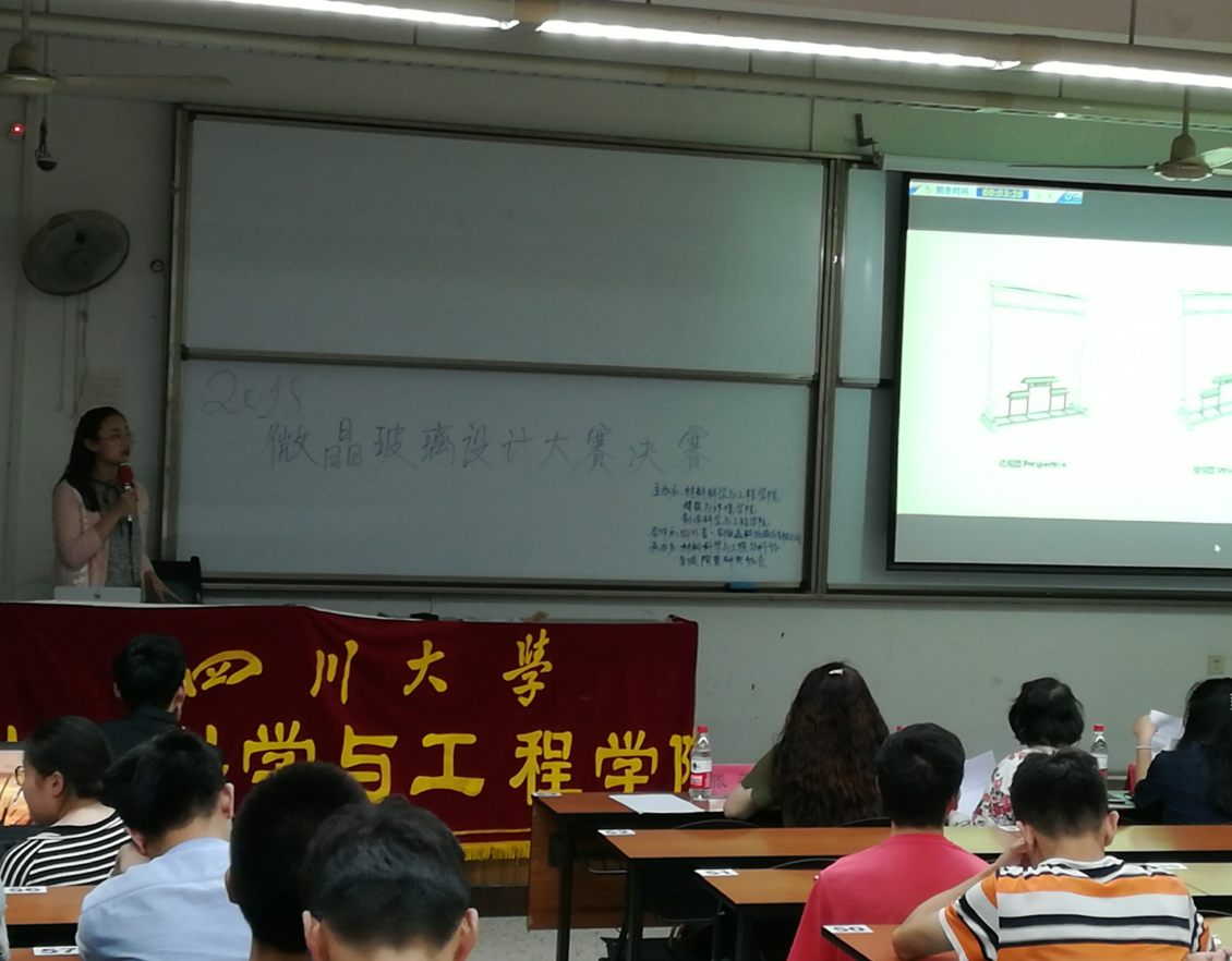 5月6日,由beat365中文官方网站、beat365中文官方网站建筑与环境学院主办,四川一名微晶科技股份有限公司协办的2018“川.雅”微晶玻璃系列产品创意设计大赛决赛,在beat365中文官方网站江安校区隆重举行!到场嘉宾有四川一名微晶品牌总监周小微女士、深加工技术总监唐建辉先生,beat365中文官方网站无机材料系和生物医学工程系主任芶立教授、张萍副教授、院分团委书记王娇老师。