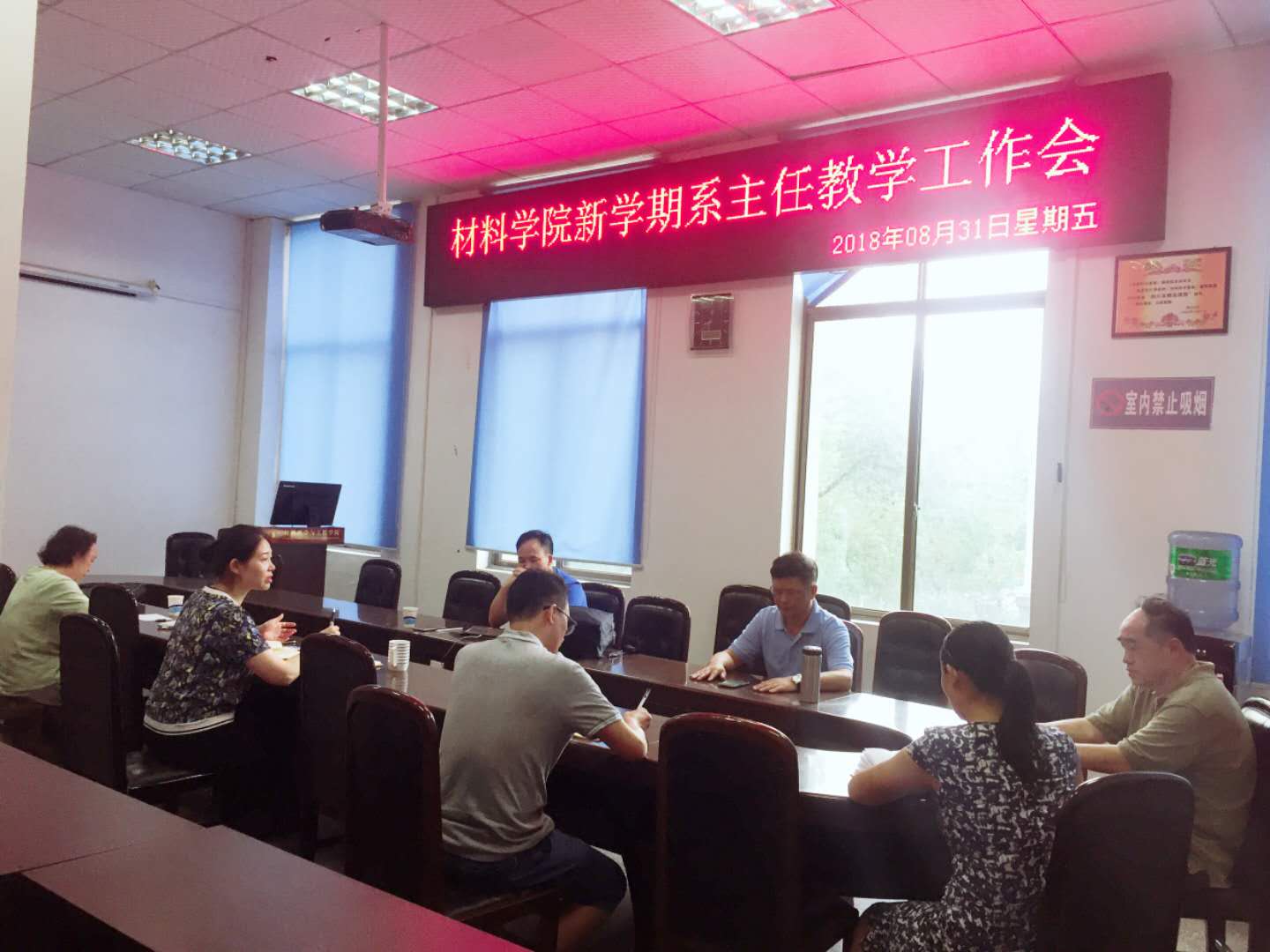 8月31日上午8:30,beat365中文官方网站召开新学期系主任教学工作会,会议由教学副院长林江莉主持,材料科学系主任张静全,新能源材料系主任陈云贵,无机非金属材料及生物医学工程系主任苟立,金属材料系主任黄维刚,教学秘书李英参加了此次会议。