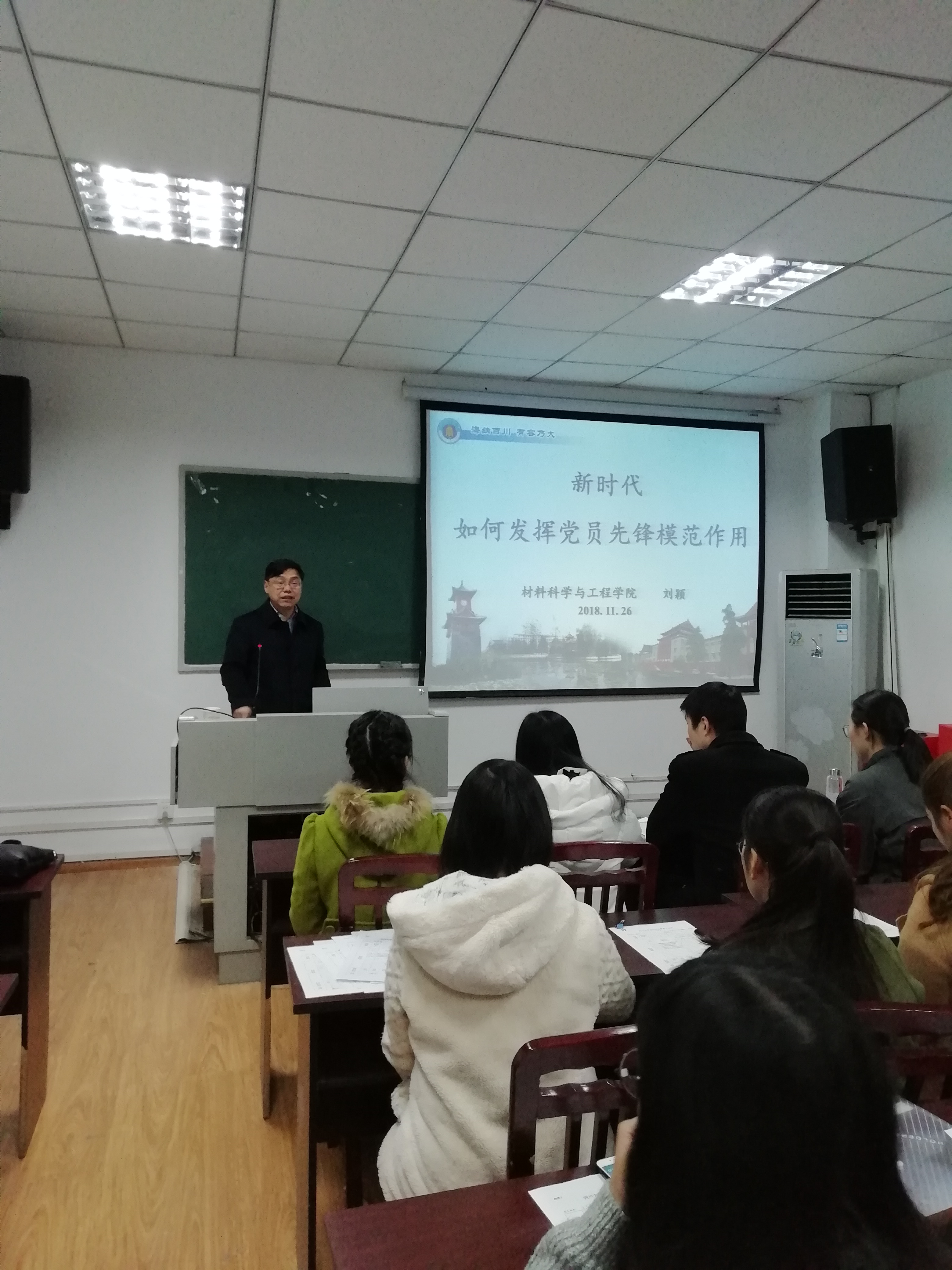 2018年11月26日晚18:30,第一理科楼209。beat365中文官方网站院长刘颖教授为beat365官网学生党员上党课。主题为“新时代如何发挥党员先锋模范作用”。