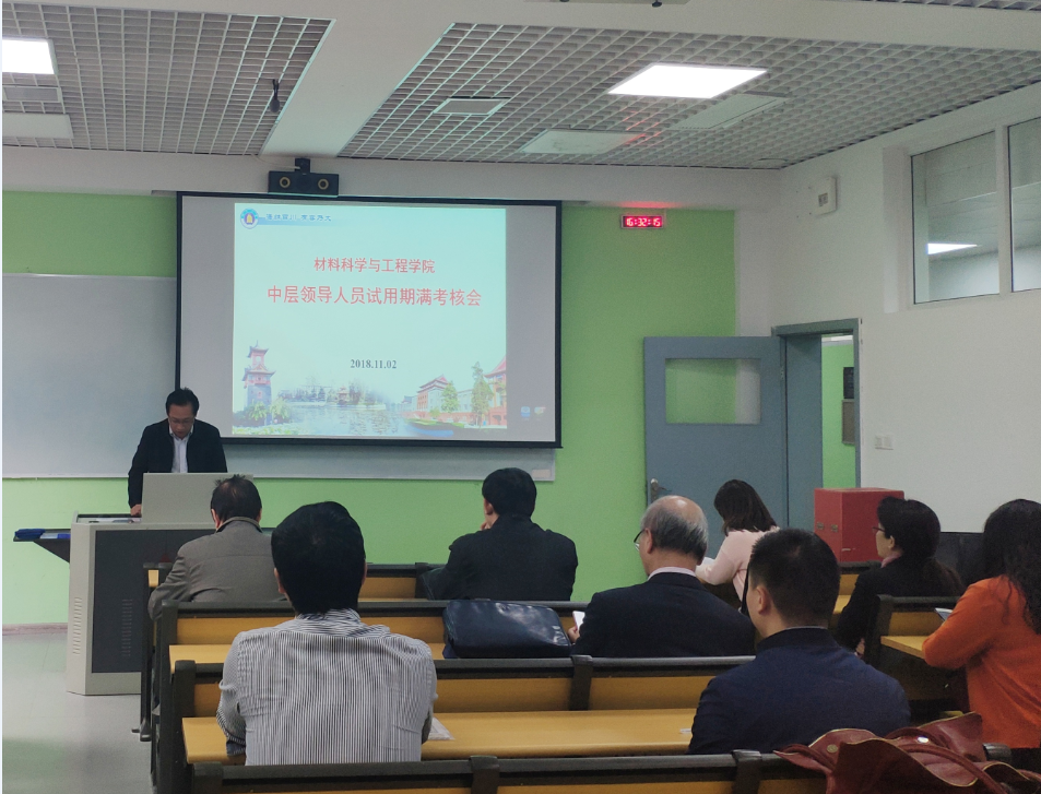 2018年11月2日下午4:30,beat365中文官方网站在东三教115教室召开了中层领导人员试用期满考核会,对beat365官网副院长吴家刚、林江莉进行试用期满考核。beat365官网全体在职教职工参加了会议,校长办公室副主任兼机关党委副书记韩杰同志、校党委办公室张超哲同志及校纪委办公室、监察处罗红义同志一行三人组成考核工作组出席了会议,会议由韩杰同志主持。