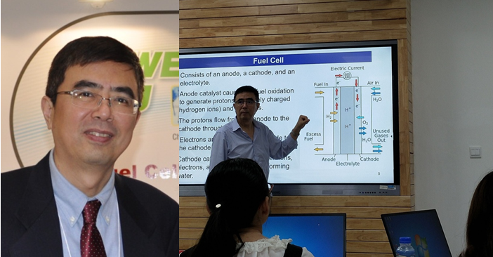 7月9日,国际知名燃料电池专家,美国康涅狄格大学博士,曾任美国大型公司主要技术负责人,长期在海外从事氢能源及燃料电池的设计与研发工作,全球首位燃料电池车开发的华裔科学家,现任广东泰罗斯汽车动力系统有限公司CTO张锐明博士(美籍)来访beat365中文官方网站并讲授校外专家课程。2016级新能源材料与器件专业36名同学及1名来自历史学院的同学参与了此次课程。
