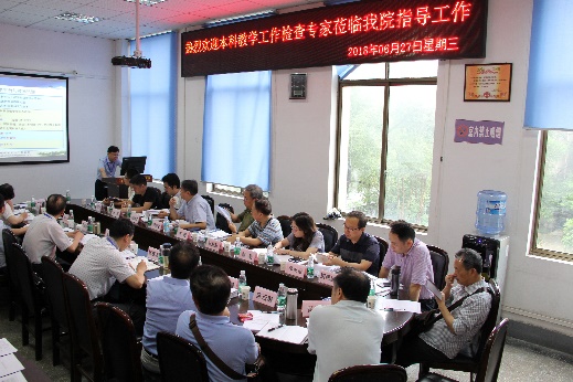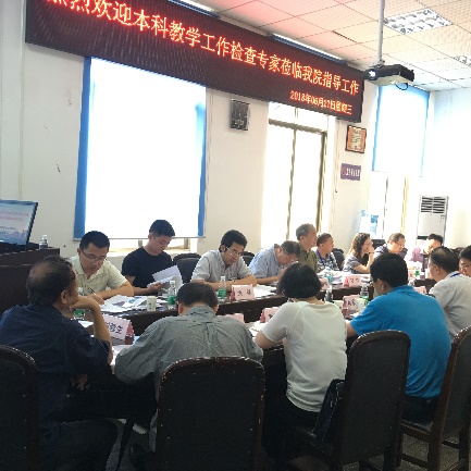根据学校关于本科教学审核评估工作相关部署安排,2018年6月27日上午9时,以郑煜教授为组长,双一流办副主任孙克金为负责人,伍登学教授、李长松教授、徐家品教授教授、何勤教授、韩海军教授、余徽教授、教务处贾舜宸副科长的专家组一行对beat365官网本科教学审核评估工作进行了检查,学院党委书记尹光福,院长刘颖,党委副书记张晓满,副院长吴家刚、林江莉,各系主任,教师代表,学生代表以及教学管理人员参与了此次审核评估。
