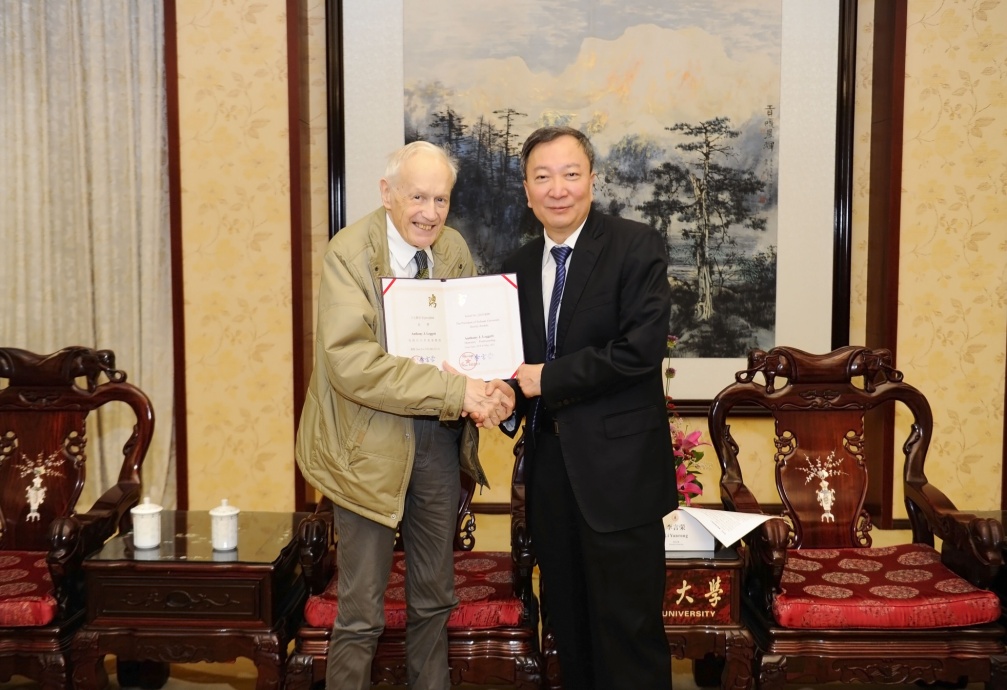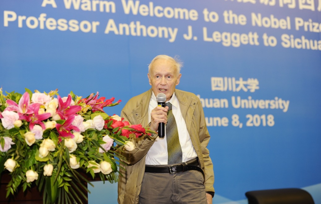 安东尼·莱格特由于在超流体理论研究中做出的原创性工作被授予2003年诺贝尔物理学奖;是美国科学院院士、美国人文与科学学院院士、俄罗斯科学院外籍院士、英国皇家学院院士、英国物理学会荣誉院士,被英国女王伊丽莎白二世授予爵士称号。在会见中,他对川大的热情接待表示感谢,非常荣幸地受聘为川大名誉教授。安东尼·莱格特表示,将积极发挥自身优势,为川大量子物理科学发展多提建设性的建议,围绕量子物理等学科前沿领域同川大师生开展深入合作与交流。