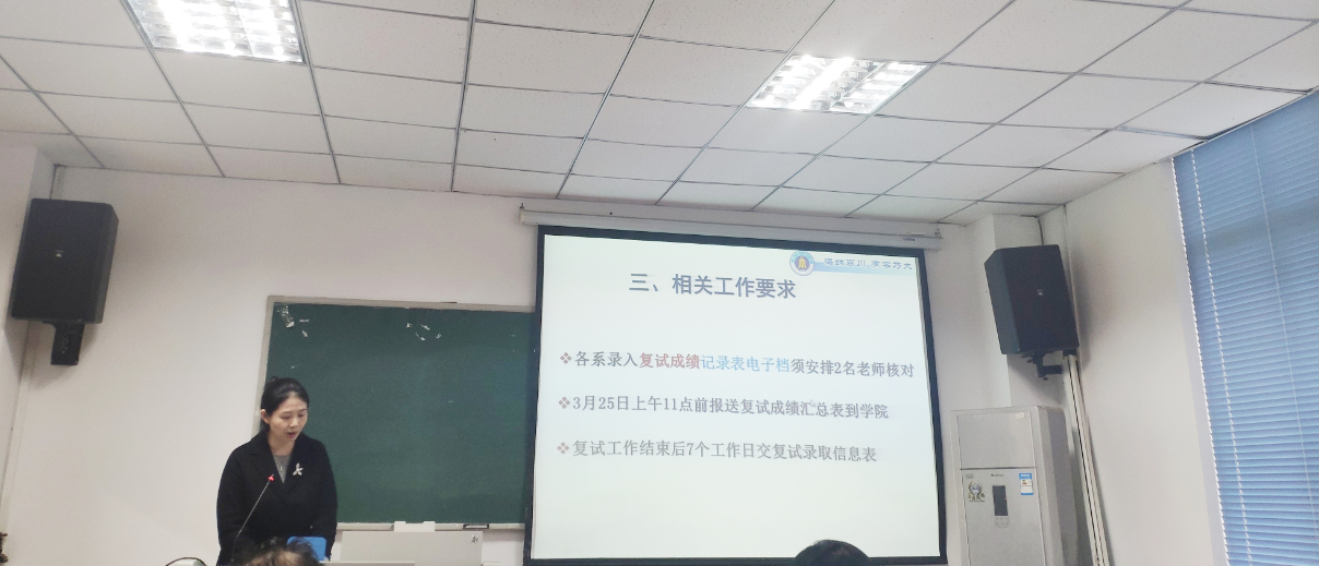 beat365官网研究生复试录取工作将于3月22日-25日组织开展,为严肃复试工作纪律,规范复试工作流程,学院高度重视本次复试录取工作培训会。林院长首先强调了复试命题工作的保密和责任,并指出复试试题及其答案在启用前均系国家机密材料,相关人员务必严格遵守工作纪律、信守承诺、保守秘密,过失泄密和故意泄密行为均需承担刑事责任,随后林院长根据beat365官网2019年研究生复试工作安排的实际情况,对beat365官网复试工作的注意事项、复试专家组成员现场独立评分、确保复试工作的严肃规范、公平公正等问题进行了强调和说明。