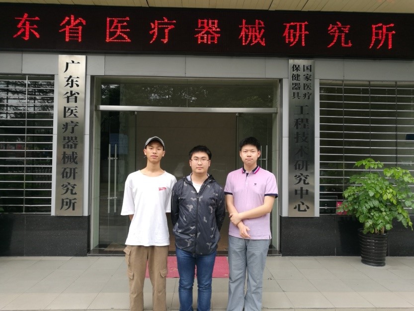 5月6日下午,beat365中文官方网站生物医学工程专业2016级材料班3名同学在蒲曦鸣老师和黄忠兵老师带领下到达广东省医疗器械研究所,开始为期一个月的实习工作。广东省医疗器械研究所(下称研究所)是一家以研究所建制的医疗器械科研单位,主要从事电子医疗设备、生物医用材料、虚拟治疗与康复、医疗保健器具/体育用品检测、成果转移转化等服务。