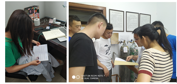 同时,在检查过程当中,向同学们分发了《beat365中文官方网站实验室安全知识小手册》,向相关师生强调了实验室安全生产有序进行的重要性和必要性。告诫在实验室的同学们,要克服炎热天气的影响,做好个人实验室安全防护工作,强调开展实验时要根据实验情况选择合适的防护服、护目镜、口罩等防护用品;禁止穿短裤、短裙、露脚面凉鞋进入实验室;女生长发须扎好盘起,努力做好实验室安全工作。