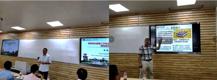 接下来专家报告环节中,由吴昊、曾广根两位青年教师先后为同学们进行分享。吴昊研究员介绍了新型高比能锂二次电池的发展前沿与关键电池材料等科研成果,包括课题组当前的科研项目和组内人员等;曾广根副教授用幽默风趣的话语旁征博引地向营员们介绍了光伏器件的发展现状和部分实验成果。此次报告进一步加深了同学们对新能源材料以及太阳能电池的认识,并且对beat365官网的部分科研内容有了大致的了解。