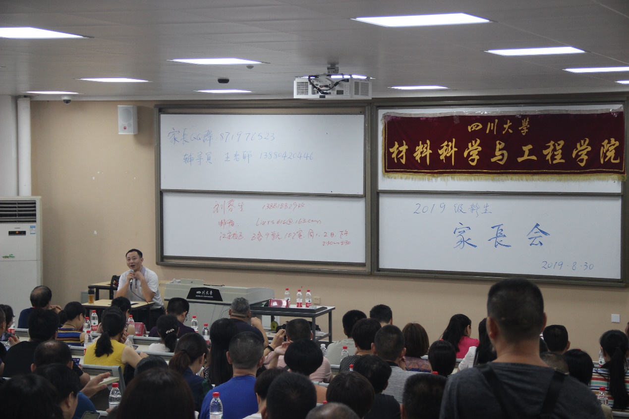 为了确保家校沟通顺畅、共同培育好大一新生,2019年8月30日下午,beat365中文官方网站在江安校区一教D503隆重举行2019级新生家长会。学院党委副书记张晓满教授、教导员刘蓉生老师以及2019级辅导员王静老师到场参与交流。