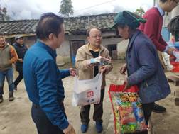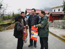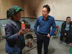 随后扶贫帮扶工作小组分成两组,由尹书记和张书记分别带队走访慰问了beat365官网对口帮扶的14户贫困户。金秋时节秋色宜人,山间蒙了一层薄雾,青山绿水间属于秋日独有的彩林若隐若现,错落而富有色彩及民族特色的民居显得额外好看,村民热情地与大家寒暄。扶贫小组深入到每一户贫困户家中,送去了文具及日常清洁等用品,帮助他们打扫卫生、整理内务,并围绕“两不愁三保障”的脱贫攻坚目标,细致了解了他们近期子女上学、卫生健康、教育医疗保障、“三建四改”、务工务农、种植养殖等情况,宣传党和学校的扶贫方针政策,着重讲解了教育医疗保障制度。交谈中,老乡们表达了对国家、学校、学院帮扶工作的感激之情,也表示对未来更加美好的生活充满信心和期望。帮扶小组反复告诉他们健康和教育的重要性,希望他们一定要重视小孩的教育,并注重环境卫生,保持健康,并鼓励他们克服困难,在各项帮扶政策的帮助下通过勤奋努力创造更美好的生活。
