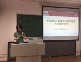 在金程建设的主题讲座之后,各系交流了开展课程与教学评价大讨论的情况。材科系何知宇副教授介绍了本系本科教学的根与本,建议充分利用学校资源进行课堂改革。金材系黄雪飞副教授交流了对目前评教系统的建议。无机生医系黄忠兵教授交流了课程思政的实施和开展,以及评教系统的多样化问题。新能源系武莉莉教授交流了人才培养方面的心得和体会。各系各抒己见,为如何提高教学质量提出了良好的意见与建议。