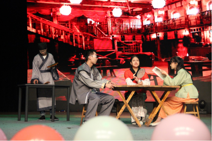 紧接着各种节目轮番登场,异彩纷呈,魅力四射。乐队激情弹唱,演绎经典老歌《花房姑娘》,带来一场听觉盛宴;材料一班带来的《武林外传川大版》引来全场经久不衰的欢呼喝彩;串烧《马克图布》蕴含着演唱者的充沛情感,倾述着"川越青春,材舆你告白”的命中注定;来自学院舞蹈队的舞蹈《Dancing with Luv》动作优美,引人入胜;研究生同学带来的《大鱼》空灵动听,《年少有为》真挚有情;由生医班自编、自导、自演的小品《面试》,生动有趣,也诠释了唯有真材实料才能勇担大任;材料三班刘振海同学独唱《All Of Me》引来全场的欢呼;影子戏《青春时光,我在川大》勾勒了同学们向往的未来川大生活;19级辅导员王静老师、教务员苟倩老师携手19级全体班委带来一曲《明天会更好》,歌声中饱含着铿锵自信和对明天的无限希望,绽放着青春与梦想的光芒。最后由主席团、部长团带来的压轴表演《材与你告白》,将晚会再次推向高潮。