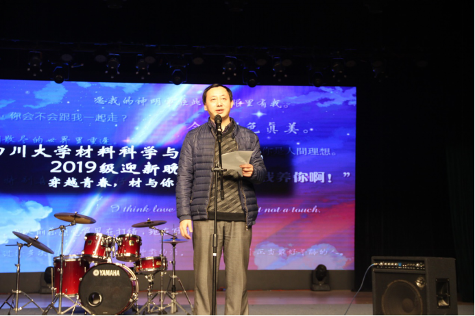 六位主持人迈着庄重的步伐走到台前,用他们热情洋溢的语调宣布迎新晚会正式开始,并逐一介绍了到场的领导、嘉宾。伴随着热烈的掌声,院党委副书记张晓满教授代表学院热情致辞,向考入学院的2019级本科生致以衷心的祝贺和热烈的欢迎,鼓励大家在以后的大学生活中积极进取,共创美好未来,并祝愿晚会取得成功。