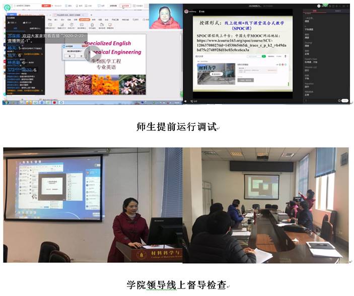 经过学院前两周的周密部署,任课教师提前运行调试,今天上午9门本科课程的线上教学有条不紊地进行。学院全体领导在学院会议室通过投屏观看各课堂授课情况。全体授课教师准时开课,无教师脱岗、迟到现象,无未经批准的代课、调课等现象;授课教师精神面貌良好,授课内容翔实,老师们还特别关注了湖北籍学生的网上学习情况;学生基本按时进入课堂打卡,到课率达95%以上;教师教学准备充分,整体情况良好,面对偶有出现的网络卡顿现象,教师均做好了充分的预案,及时联系技术支持解决出现的问题,根据网络情况变换授课方式,采用音频教学加课件PPT、录屏教学等方式进行授课;师生互动情况良好,使用电子教材和讲义等情况良好。课后教师们及时进行网上答疑,答疑效果高效方便。学院开课第一天教学秩序井然!