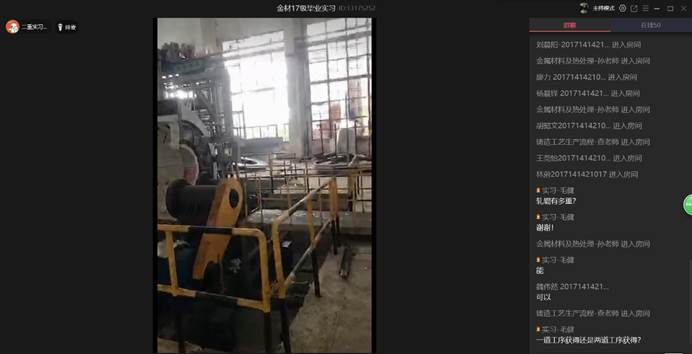 生产实习主要分为两大部分,首先学生们将会通过二重车间老师的线上讲解学习相应的实际生产知识和注意事项;随后二重老师通过手机直播带学生们参观二重各工厂的设备装置及生产流程,并结合现场为同学们讲解各生产工序的原理及作用。具体学生们将会在未来几天对二重锻铸公司的铸造厂、炼钢厂、热处理、锻造厂,重机公司的重机厂、金结厂以及检测中心等进行参观实习。