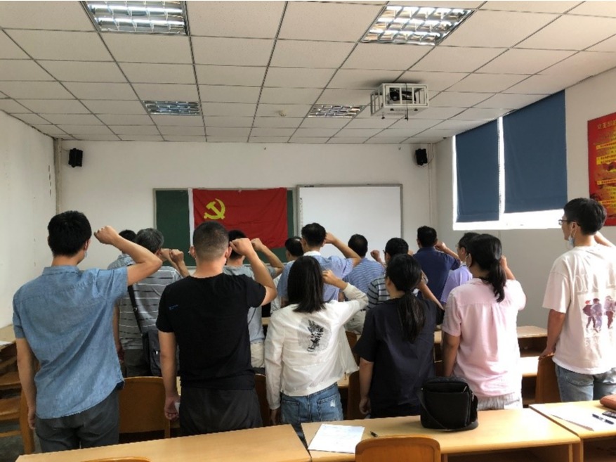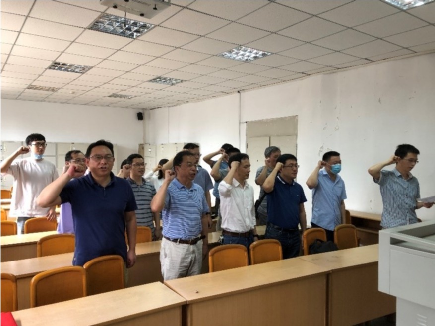 与会同志肃立在鲜红的党旗前,举起右手握拳,在支部书记朱小红教授的领誓下,再次庄严宣誓:“我志愿加入中国共产党……随时准备为党和人民牺牲一切,永不叛党。”誓言铮铮,表达了大家不忘入党初心、牢记光荣使命、永远努力奋斗的追求和信念!