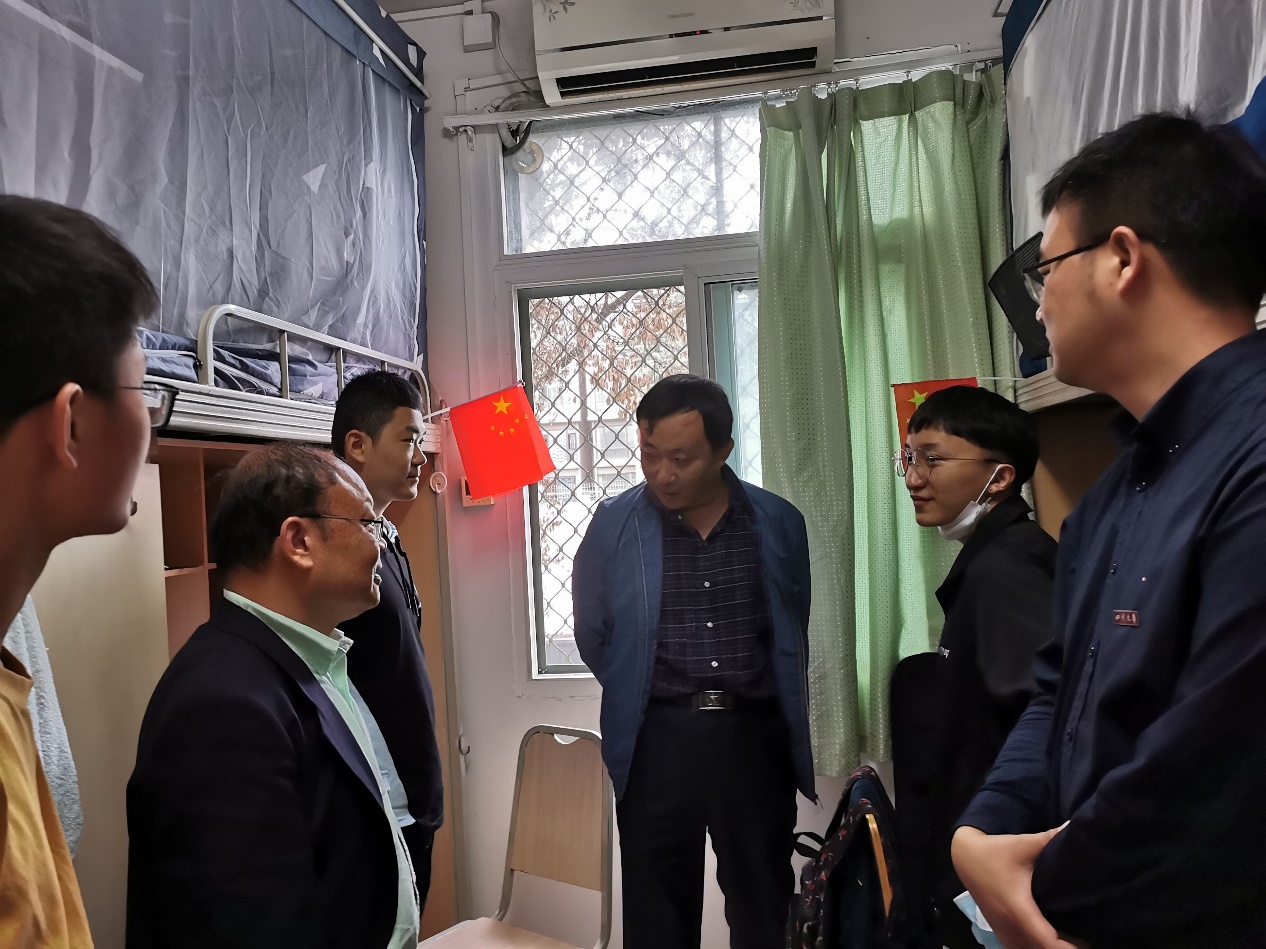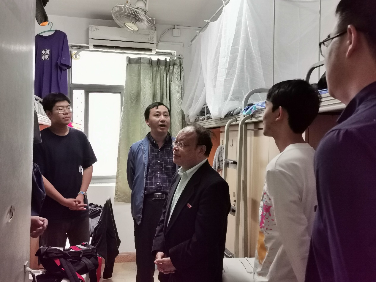 9月21日beat365官网的党委书记蒋青教授﹑党委副书记张晓满教授﹑辅导员余鹏飞老师﹑王静老师一行走访新生寝室,查看了新生入住情况,并与同学们深入交流,勉励同学们互相帮助,共同进步,有困难找学院﹑找辅导员老师。