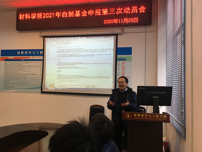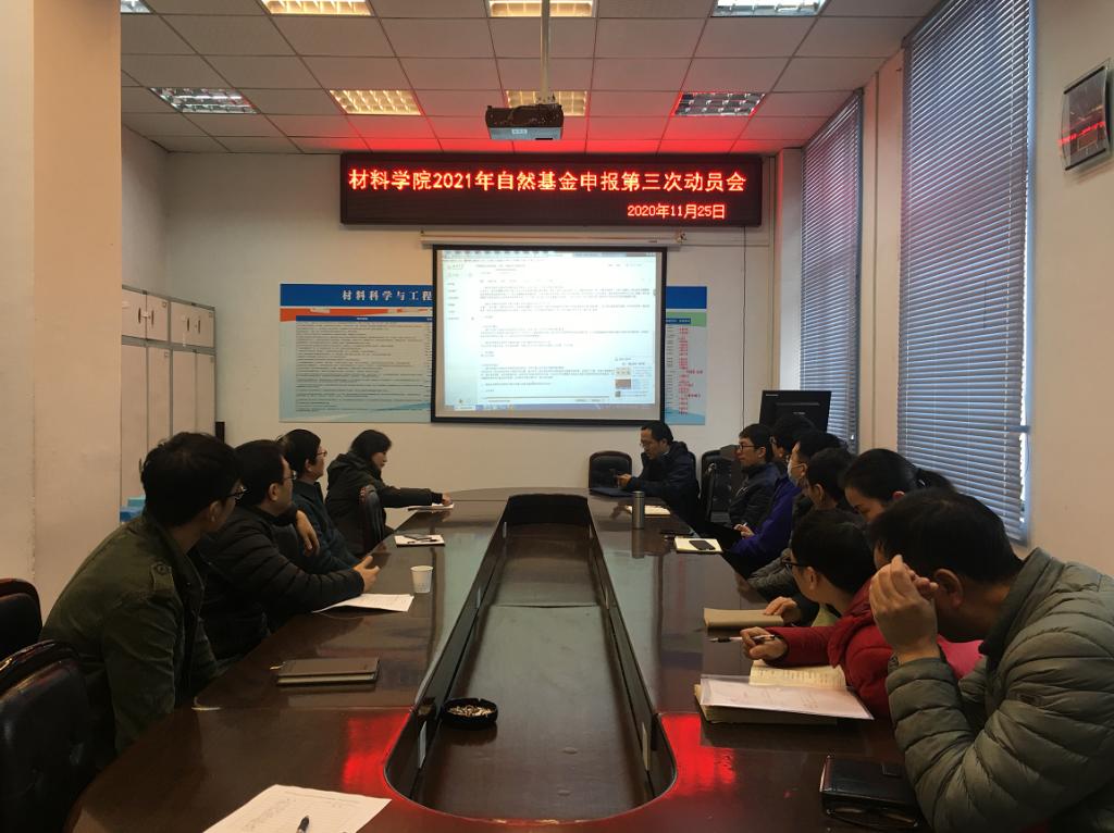 2020年11月25日, beat365中文官方网站2021年国家自然科学基金申报交流会(Ⅲ)在望江校区第一理科楼学院会议室举行。学院拟申报国家自然科学基金教师参加了会议,会议由吴家刚副院长主持。