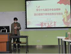 最后,学校党委副书记郭勇教授从三个方面给同学们进行了深入指导:一是深入学习十九届五中全会精神,从时间和空间的角度找准自己的坐标定位,尤其是要深入领会规划《建议》的核心要义,即全面把握新发展阶段,认真贯彻新发展理念,积极融入新发展格局。二是学校在落实全会精神中的一些具体举措,号召同学们主动作为,积极将自己与社会发展进行对接和关联,把握机遇。三是同学们在全会精神的指导下应当怎么做,即要学习全会意义,增强历史担当;学习十三五成就,增强四个自信;学习全会精神,自觉全面发展。同时建议同学们要树立坚定的理想信念,强化个人能力和素质的培养,打开自己的格局和眼界,磨练坚持和坚韧的精神。