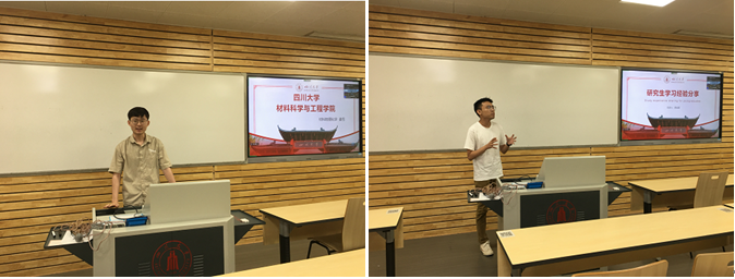 随后由硕士研究生代表谢岳和李佳琪两位学长先后为同学们分享了各自在川大的求学成长历程、科研方向、论文发表情况、学术成果和科研的一些心得体会,以及分享川大的校园环境、美食和交通的便捷,同时也鼓励大家不断学习思考,启迪智慧,增进友谊,在成长的道路上收获更多有用的知识。