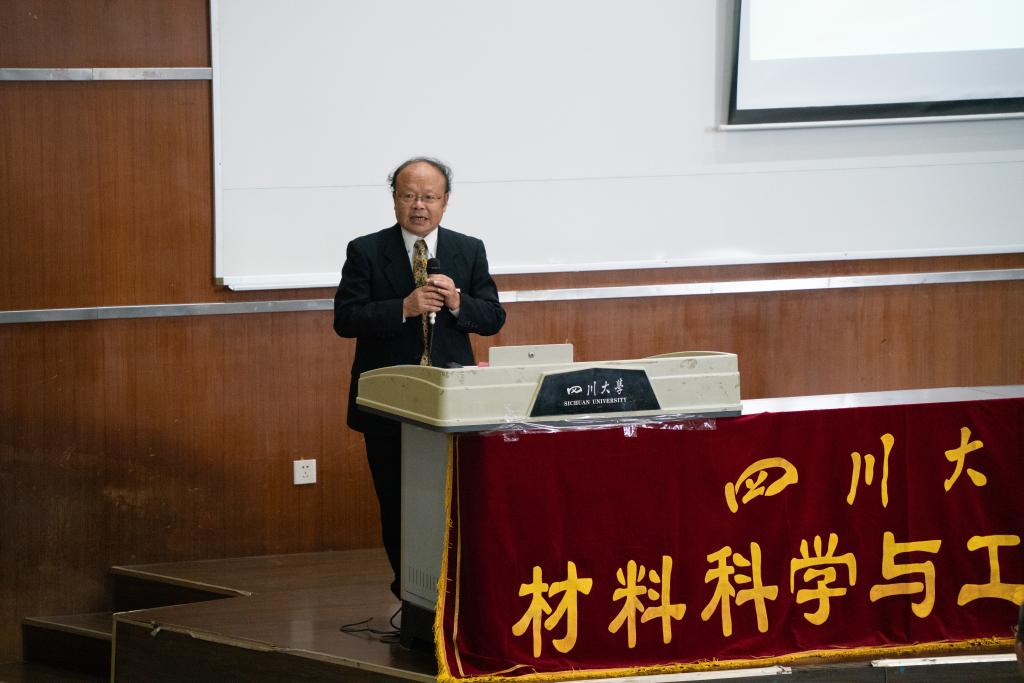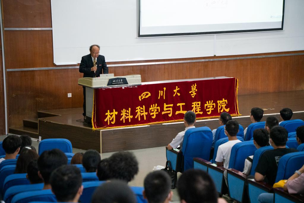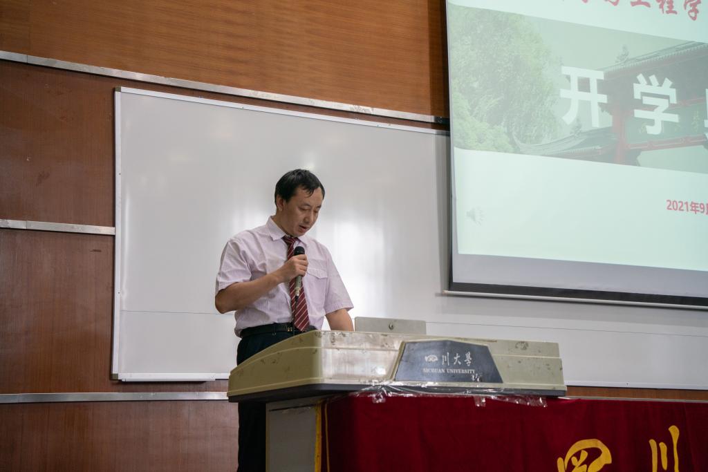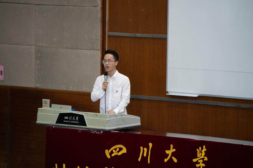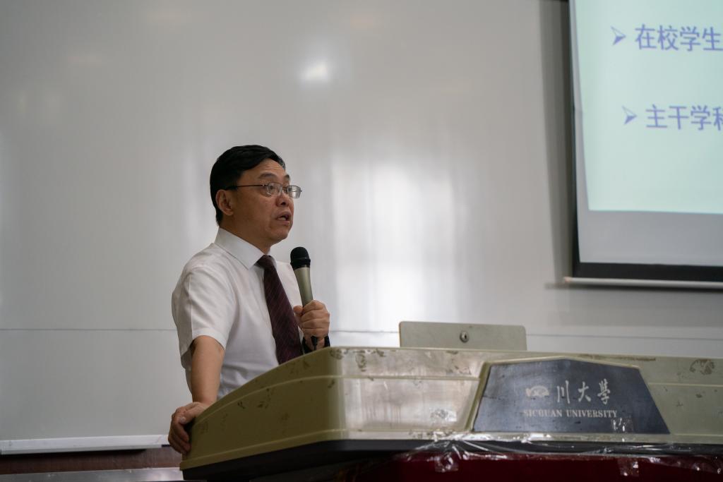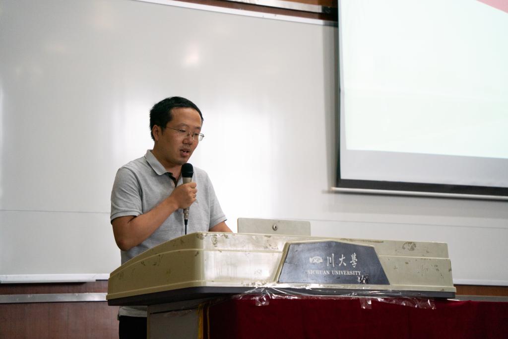 在刘颖院长介绍完学院情况之后,学院教师代表王泽高研究员代表beat365中文官方网站全体教师发表讲话。他以自己从农村长大再到在川大教书的经历出发,向全体新生们提出了三点建议,要学会做人,学会做事,学会做学问,并希望同学们能在川大校园里百尺竿头更进一步!
