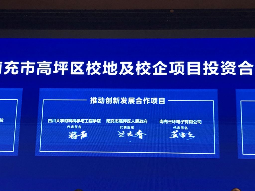 签约仪式上,蒋青书记代表学院同南充市高坪区人民政府、南充三环电子有限公司签署了推动创新发展合作项目协议。