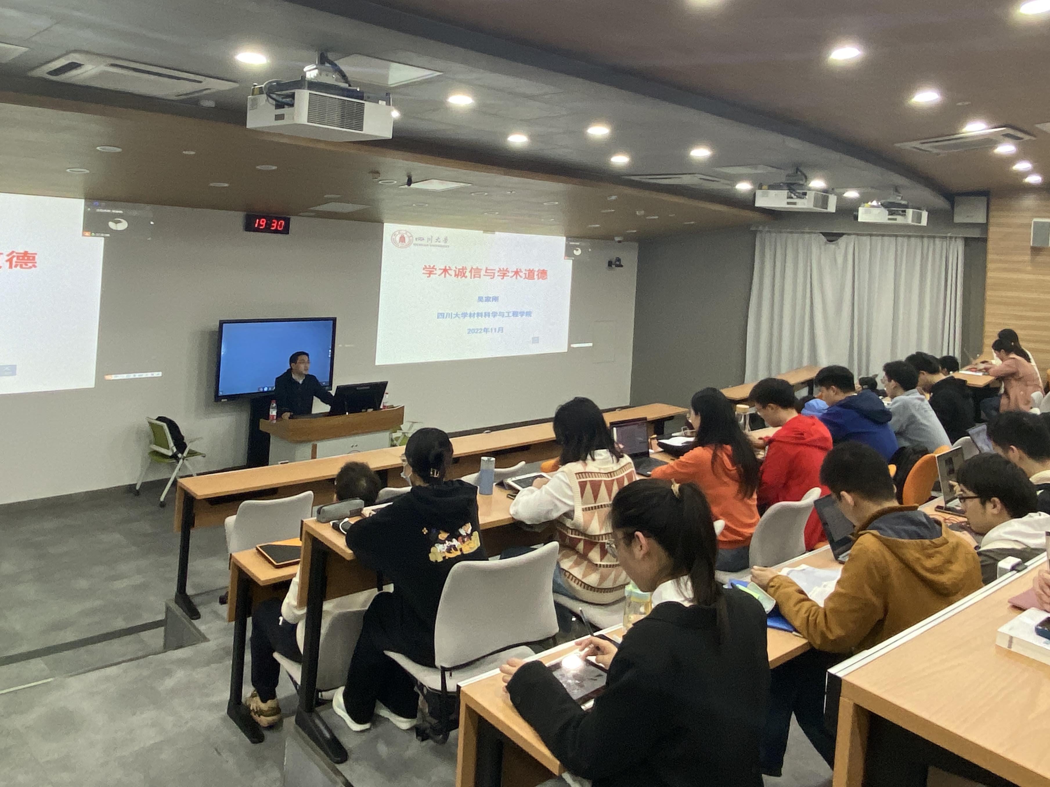 为进一步加强我校自主创新能力建设,营造有利于学术创新和学术繁荣的良好环境,规范学术行为,维护学术尊严,保障学术自由,促进学术交流,使我校学术研究健康发展和不断繁荣。2022年11月9日,beat365中文官方网站副院长吴家刚教授,于基础教学楼C区101教室为新入学的研究生和博士生上了一堂生动的“学术诚信与学术道德”思想教育课。