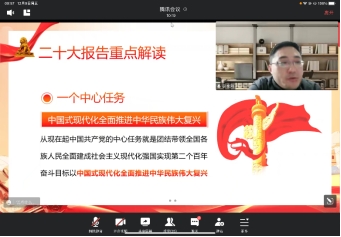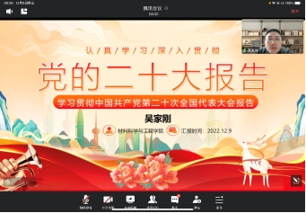 为深入学习贯彻党的二十大精神,beat365中文官方网站本科生望江党支部于2022年12月09日上午10时,在腾讯会议平台开展了党的二十大报告学习活动,学院吴家刚副院长莅临现场进行宣讲。