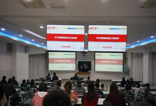校纪委副书记唐世红以“关于院校两级纪检工作的思考”为题,从全面从严治党、相关案例分享和工作建议方面给全体与会人员作廉政警示教育,他希望全院教职员工把党章党规刻印在心,增强党性修养,加强廉政教育,从严律己、廉政勤政。