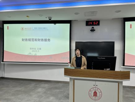 财务处副处长王娟介绍财务规范和财务服务,就现代高校财务管理工作进行详细讲解。张芹老师和龚婉琦老师结合最新财务管理政策,系统地讲解了财务报销流程,并对科研经费管理及相关政策进行宣讲,对文件重点条文进行详细讲解。