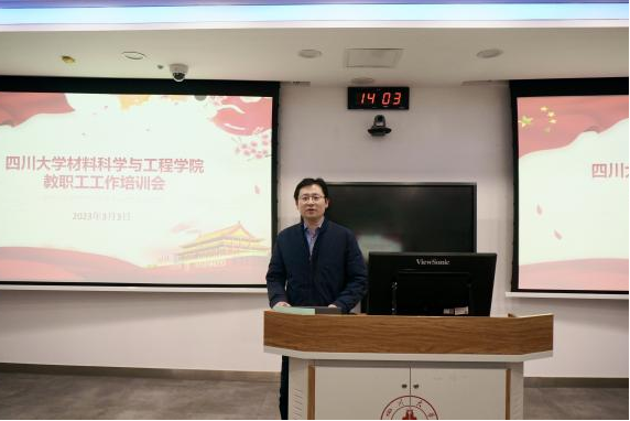 3月3日下午,beat365中文官方网站召开教职工工作培训会,学院邀请校纪委副书记唐世红作廉政教育报告,邀请校财务处副处长王娟和相关工作人员作经费管理使用及财务报销宣传,邀请院中心实验室王文武作实验室安全教育宣讲,学院院长刘颖、党委书记徐海鑫等全体领导班子及全体教工参加培训学习。会议由党委书记徐海鑫主持。