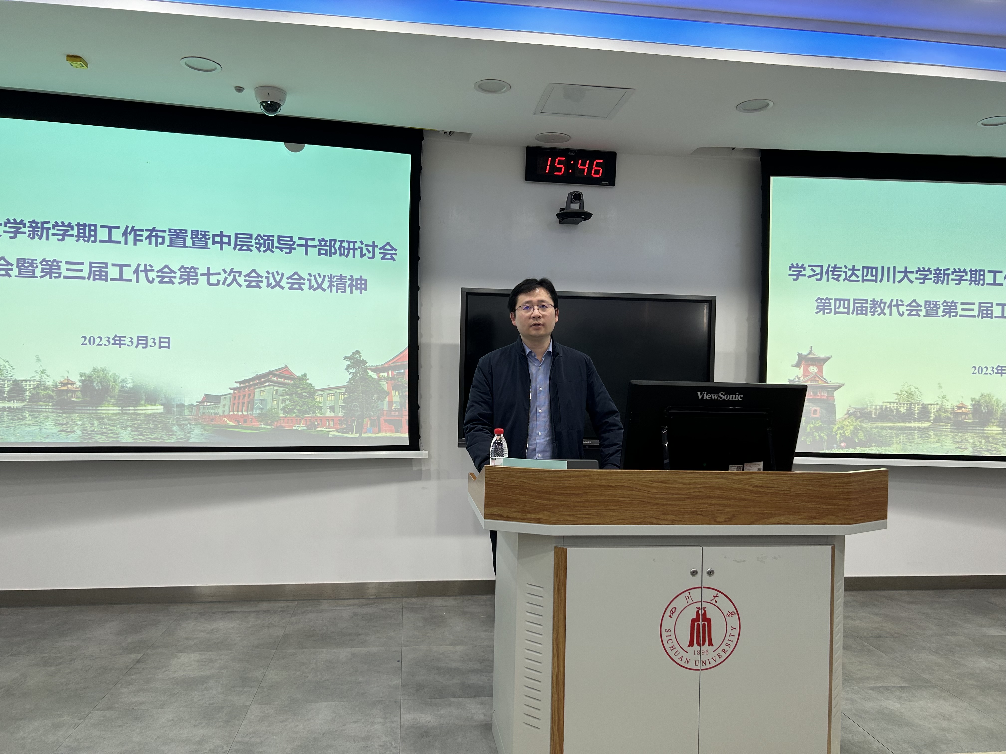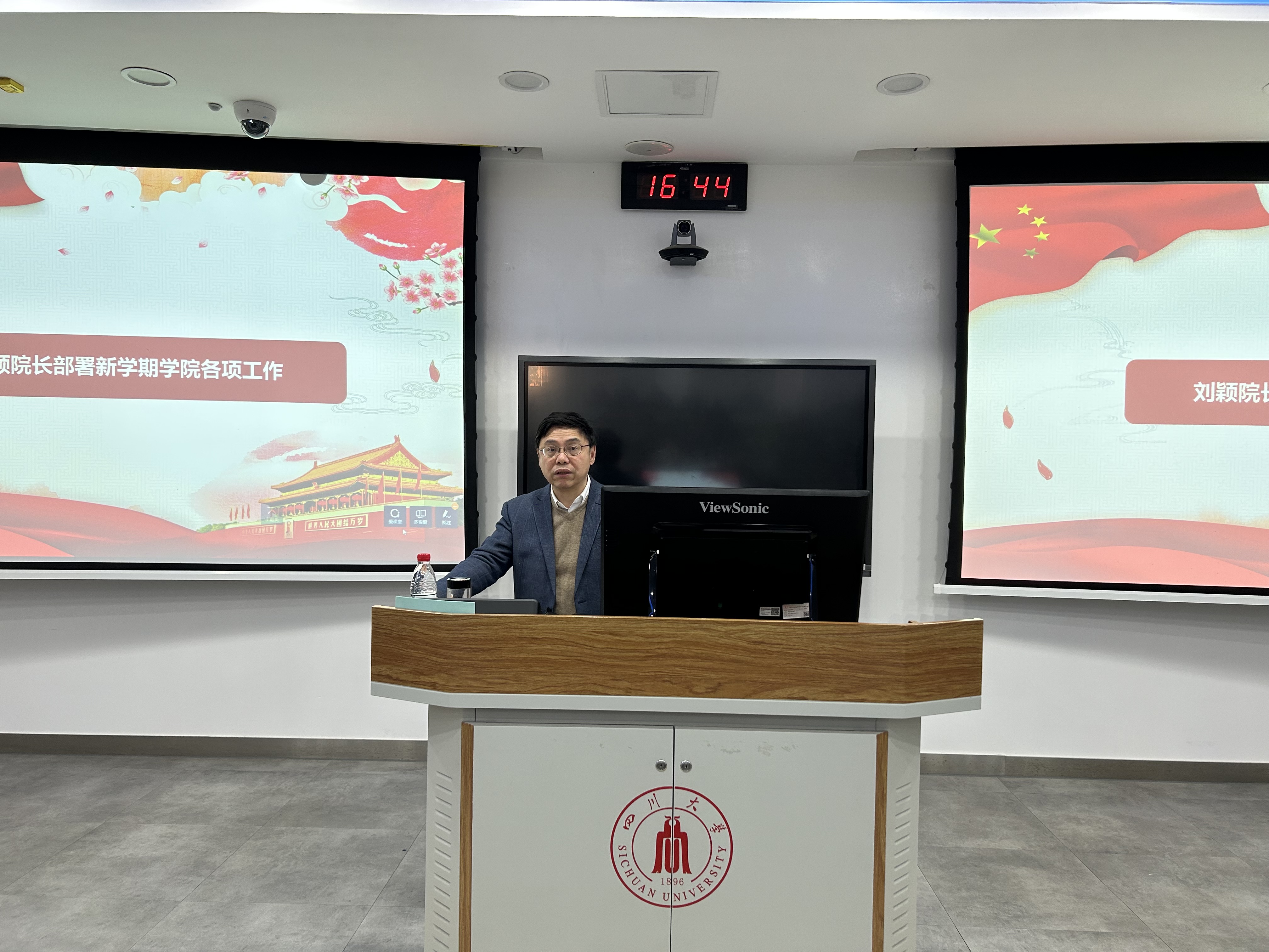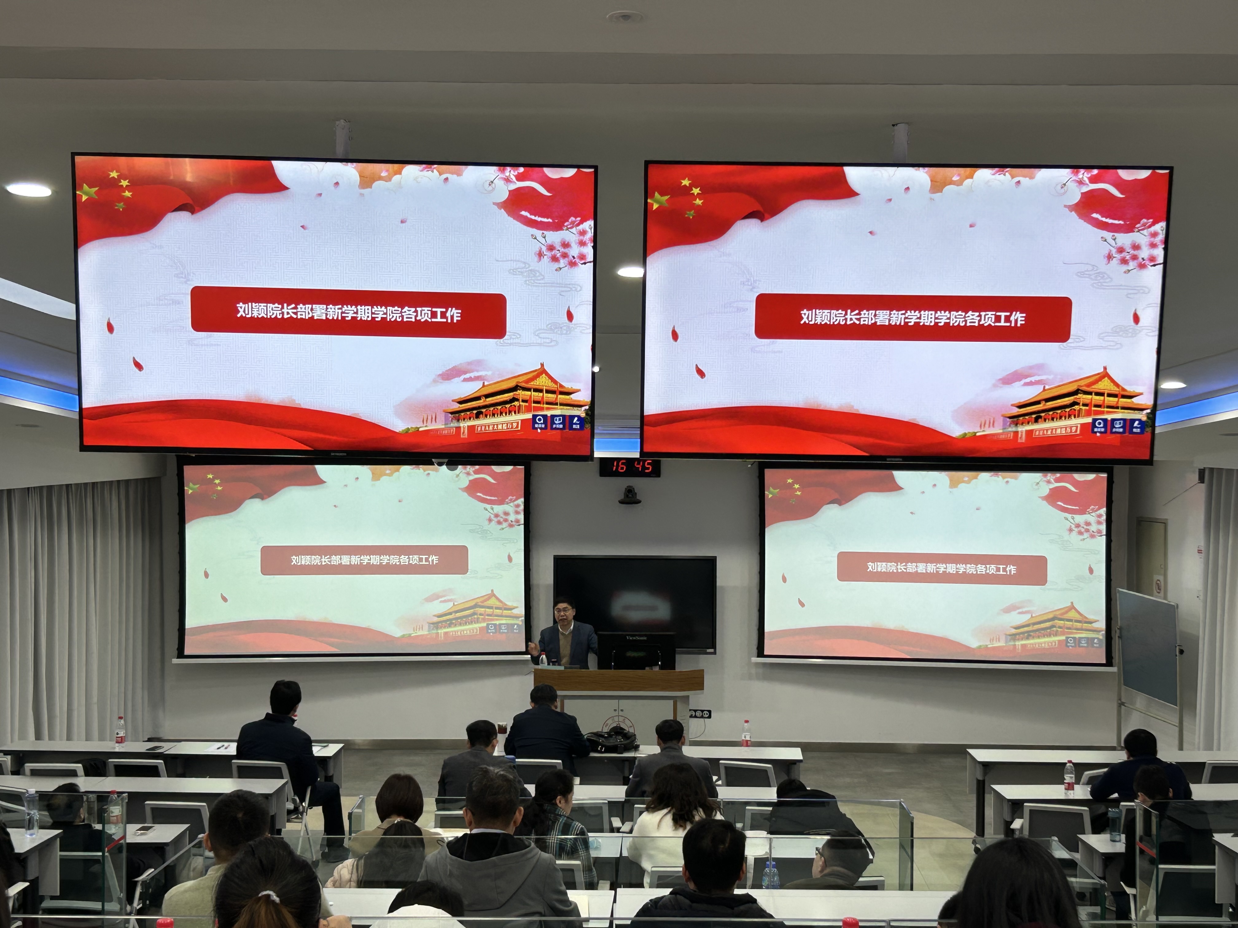 3月3日下午,beat365中文官方网站在基础教学楼C103举行全院教职工大会,深入学习贯彻党的二十大精神,全面贯彻落实学校第九次党代会精神,聚焦学校新学期工作布置会及学校第四届教代会暨第三届工代会第七次会议精神,认真部署学院本学期重点工作。院长刘颖、院党委书记徐海鑫等全体领导班子成员和全院教职工参加本次会议。会议由院党委书记徐海鑫主持。