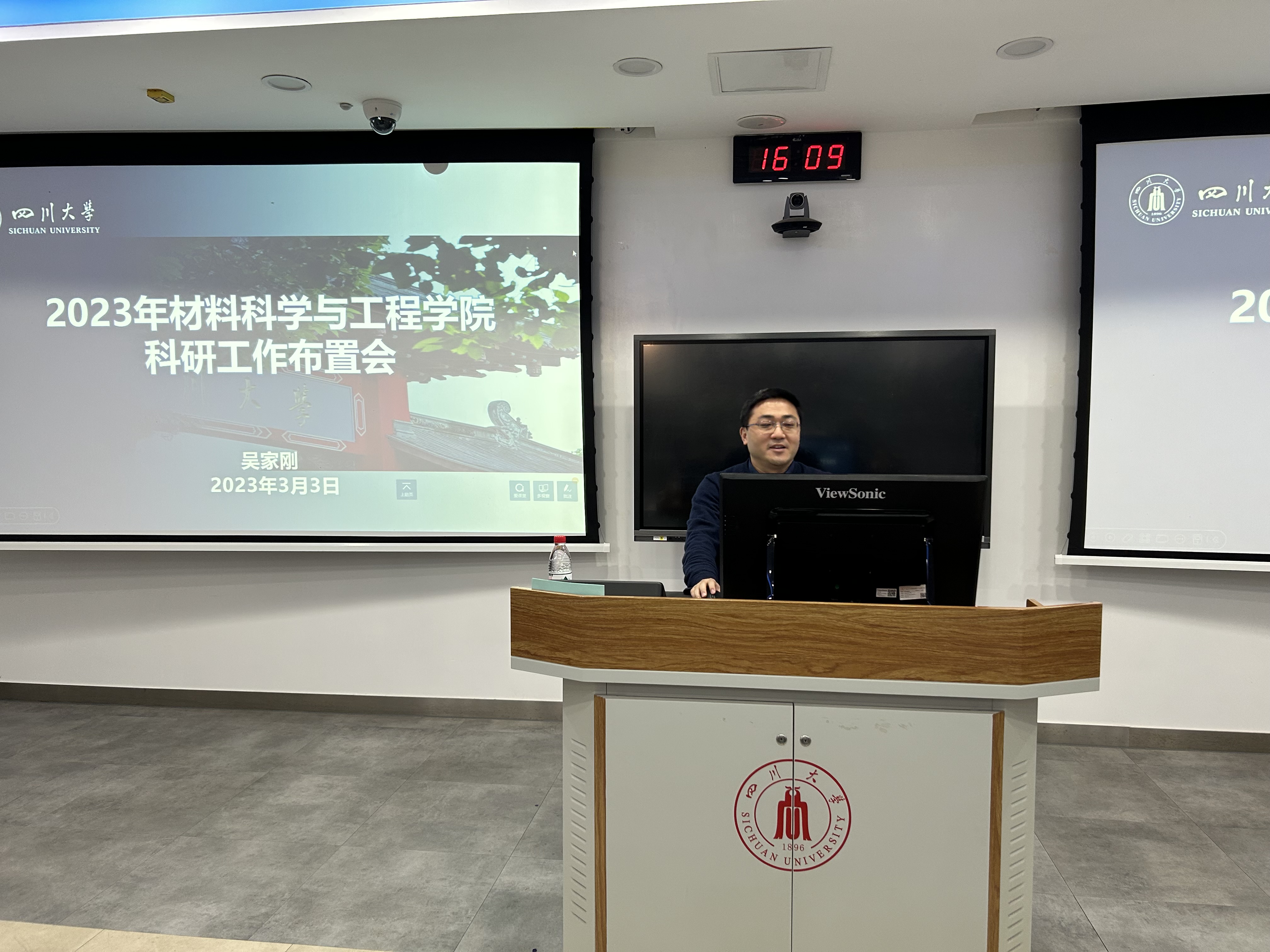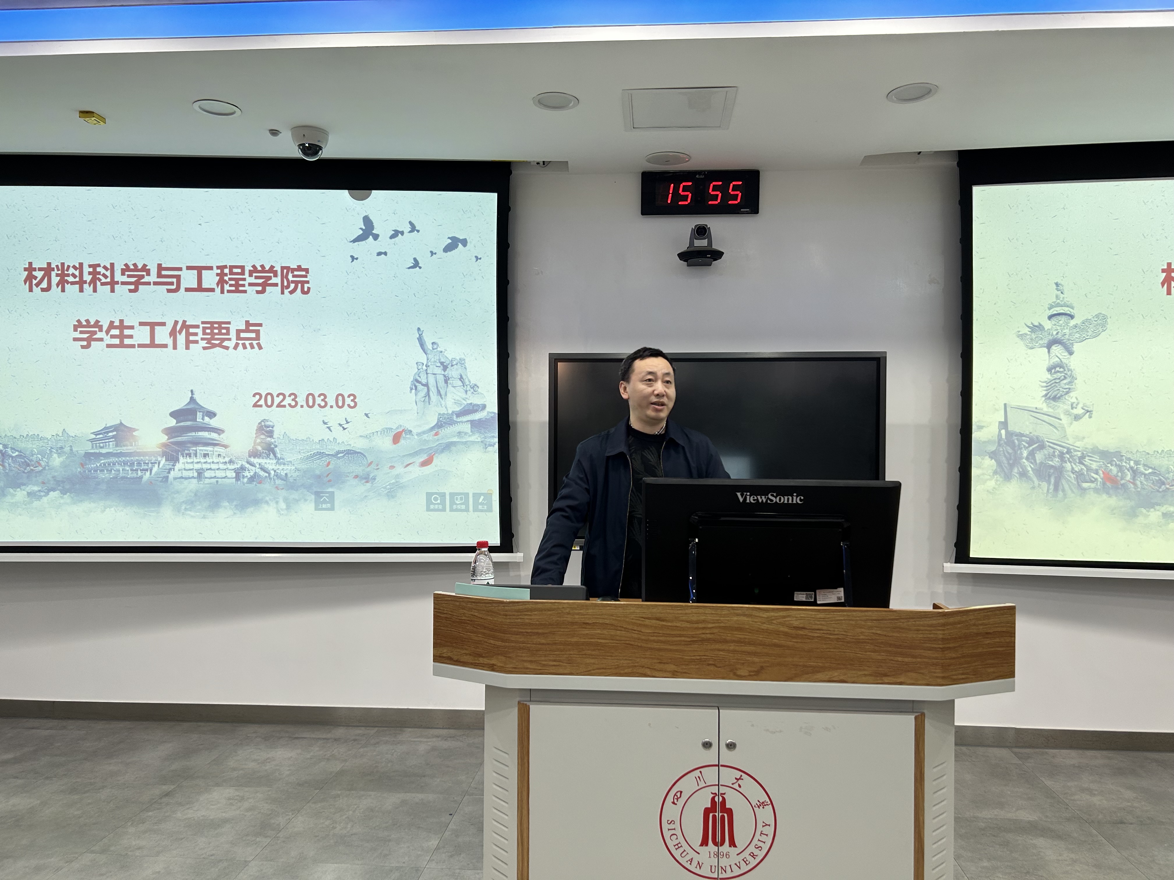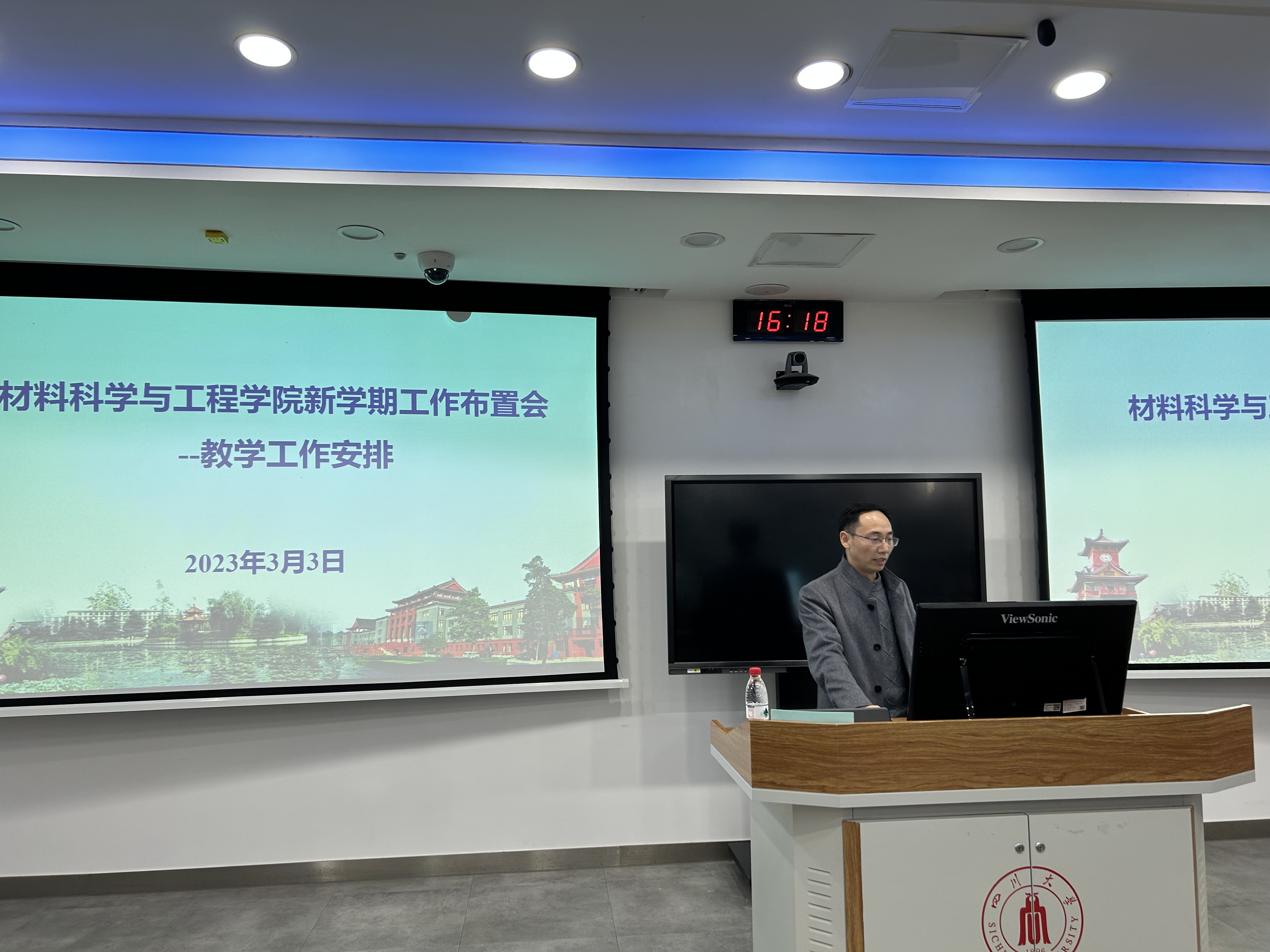 3月3日下午,beat365中文官方网站在基础教学楼C103举行全院教职工大会,深入学习贯彻党的二十大精神,全面贯彻落实学校第九次党代会精神,聚焦学校新学期工作布置会及学校第四届教代会暨第三届工代会第七次会议精神,认真部署学院本学期重点工作。院长刘颖、院党委书记徐海鑫等全体领导班子成员和全院教职工参加本次会议。会议由院党委书记徐海鑫主持。