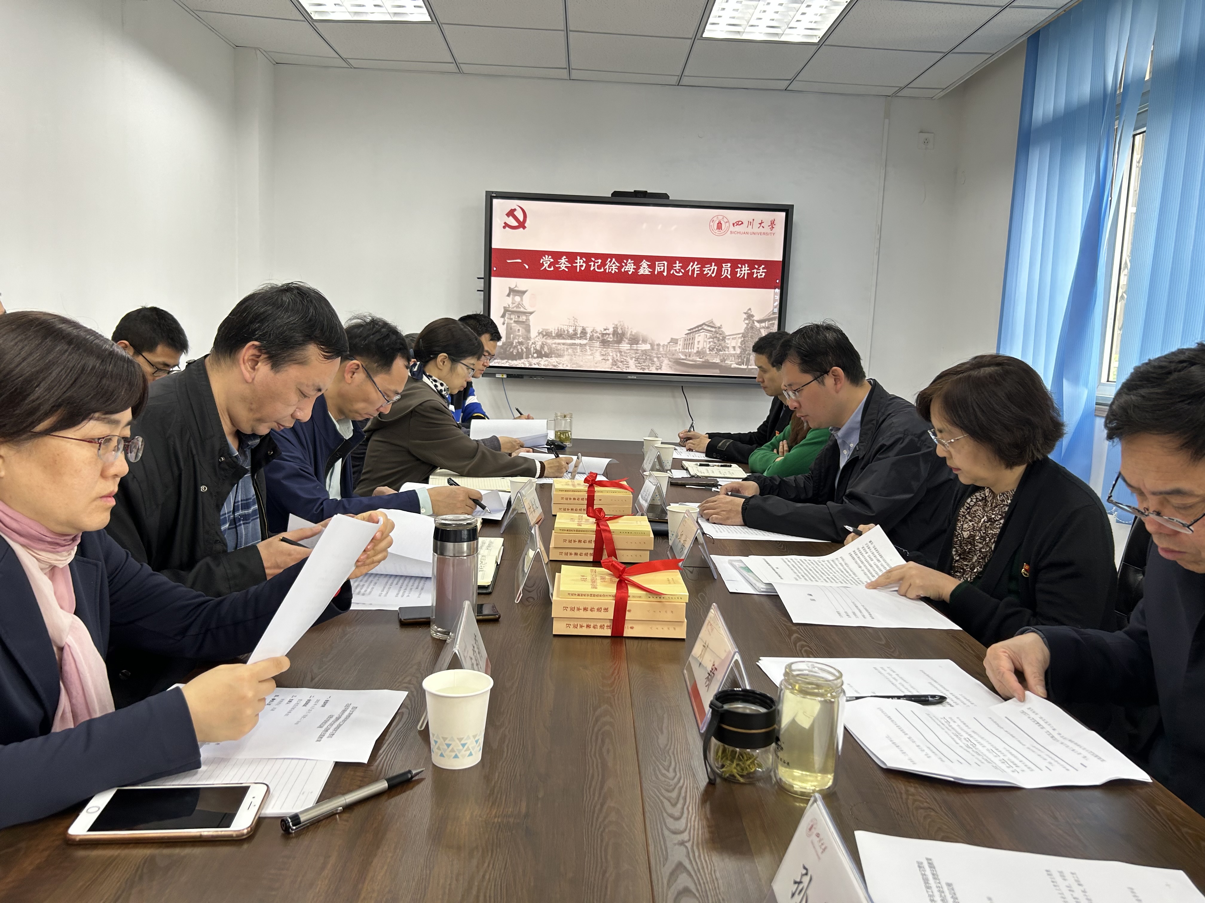 4月25日上午,beat365中文官方网站在学院楼402会议室召开学习贯彻习近平新时代中国特色社会主义思想主题教育动员大会。学院党委书记徐海鑫作动员讲话,学校主题教育第一指导组组长邱梅作指导讲话。出席本次会议的还有第一指导组成员发展规划处副处长孙克金、国际关系学院副处级专职组织员康平、社科处基地与机构管理科科长刘小娟、统战部统战科科长郭军。beat365中文官方网站领导班子、专职组织员、党委委员、纪委委员、党支部书记、教工党员和学生党员代表等参加本次会议。会议由院长刘颖主持。
